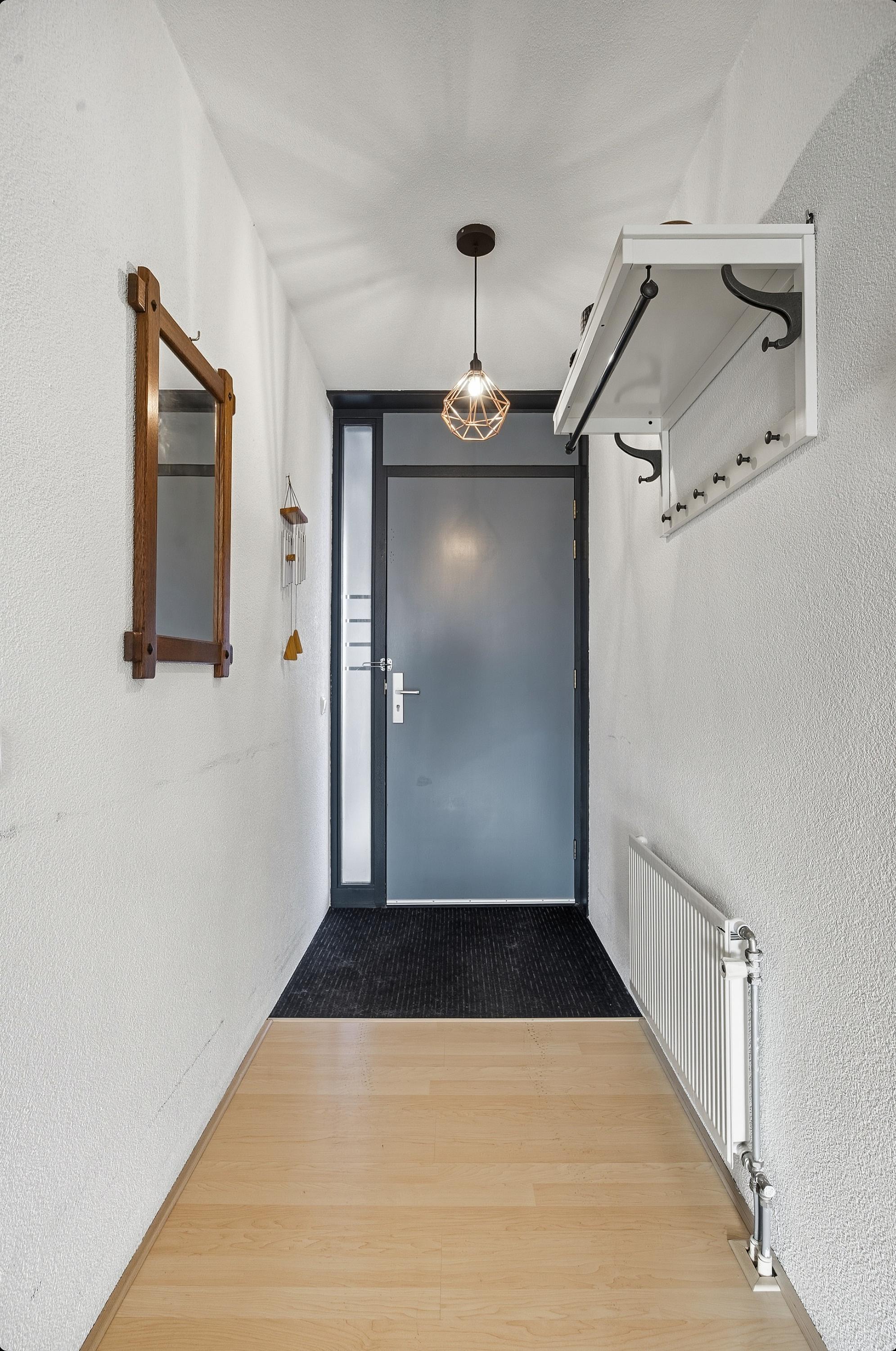 Ruime entree met intercom, meterkast, toiletruimte en toegang tot de slaapkamers, badkamer en woonkamer.