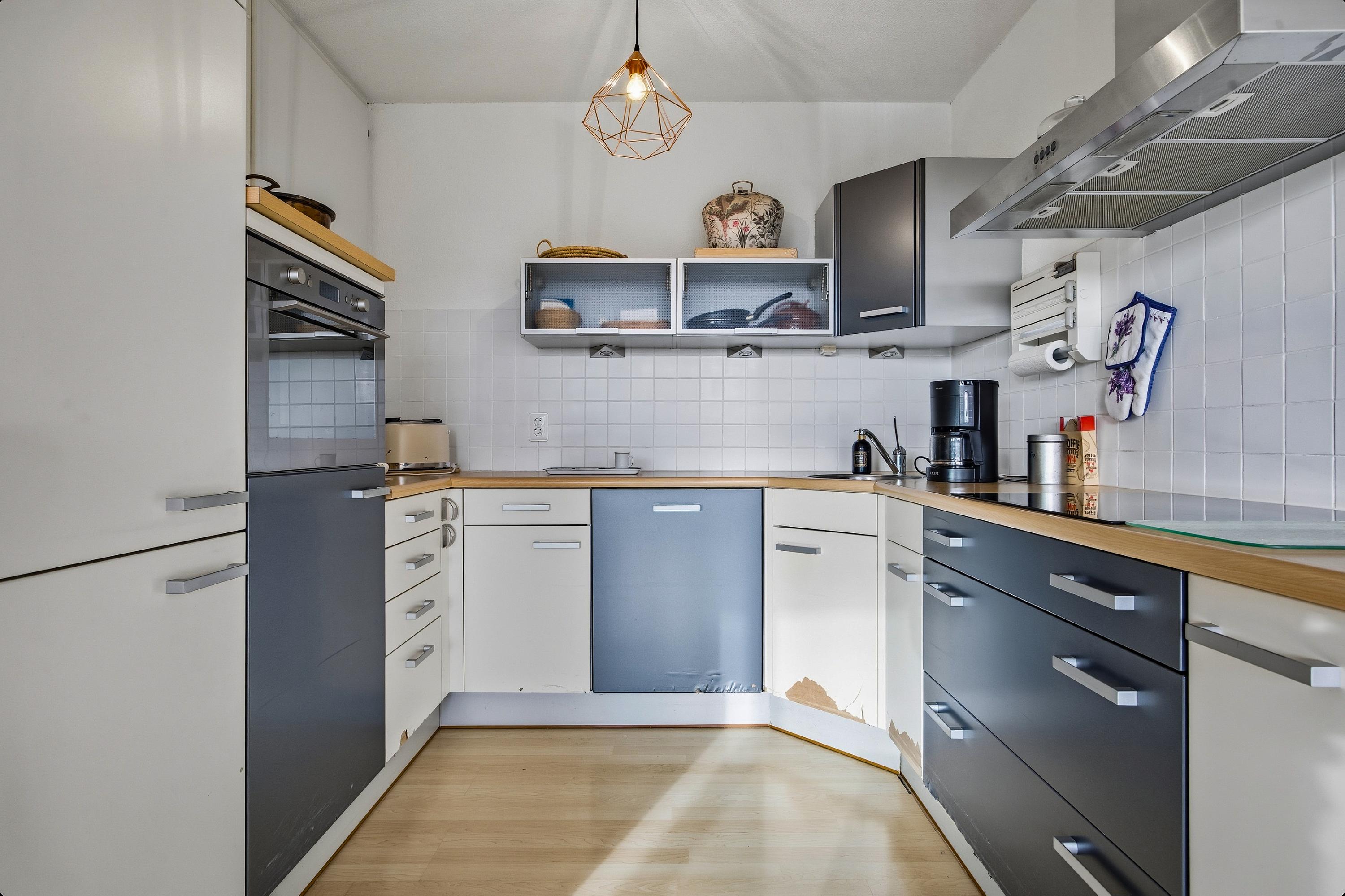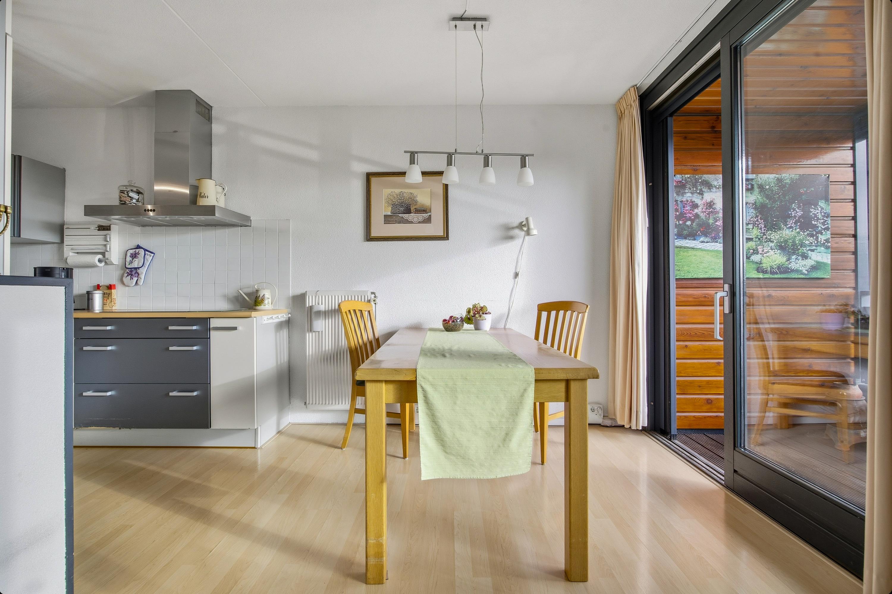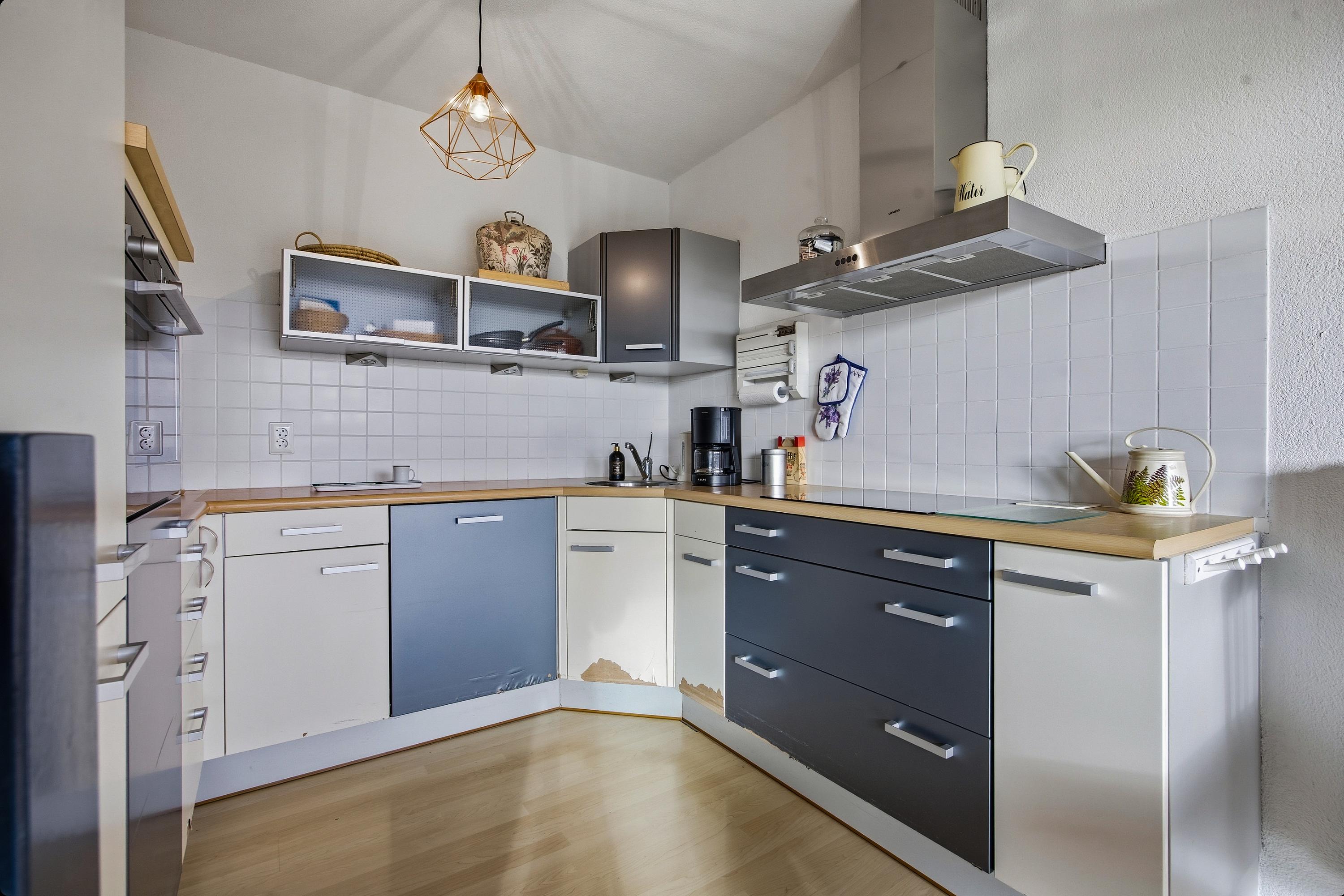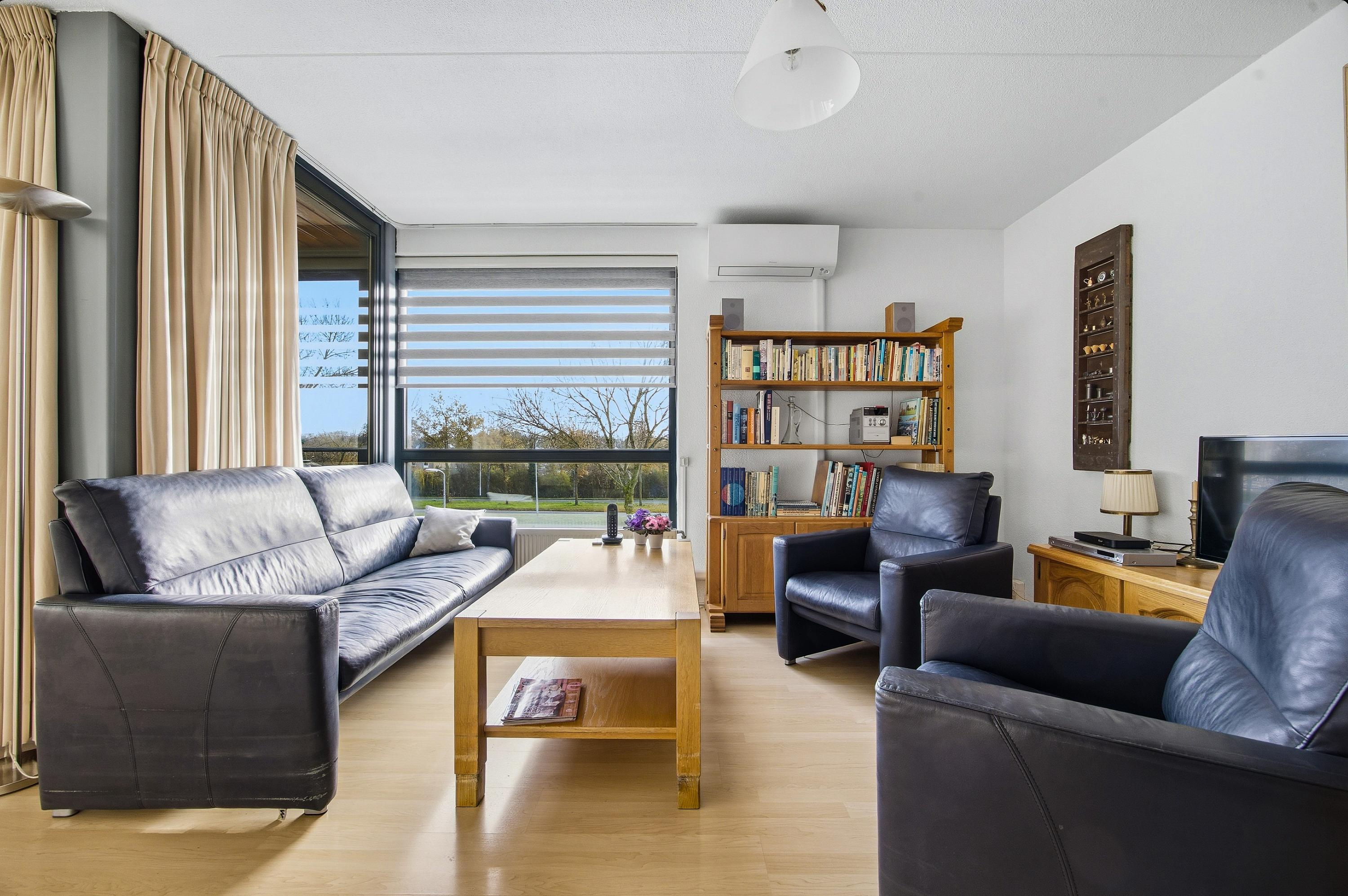 De lichte woonkamer biedt ruimte aan een royale zithoek, heeft een laminaatvloer én is voorzien van een Daikin airco-installatie voor optimaal wooncomfort in elk seizoen. Via de schuifpui bereik je het ruime terras, waar je heerlijk buiten kunt zitten en genieten van het uitzicht (zuidoost). Daarnaast staat de woonkamer staat in open verbinding met de keuken.