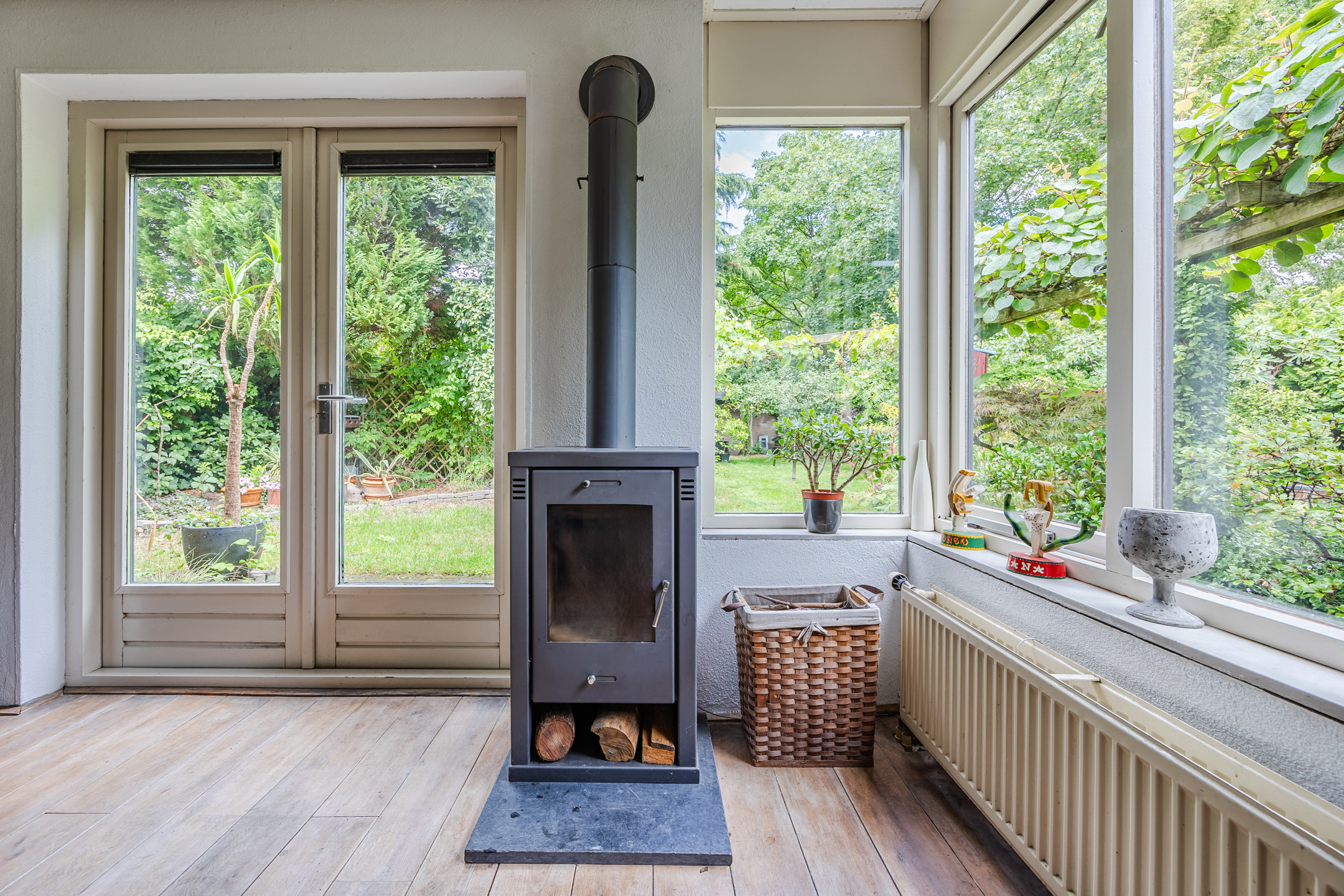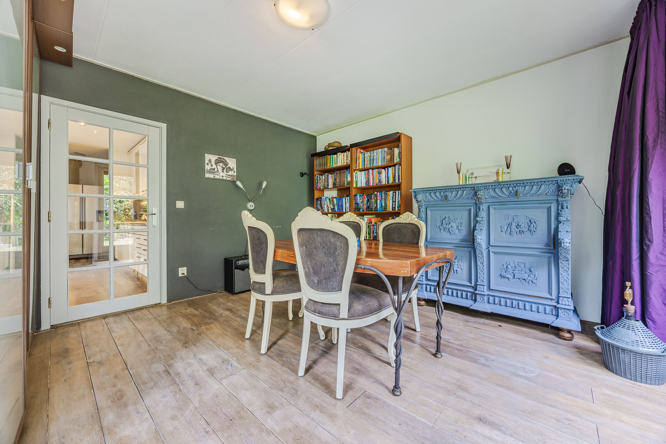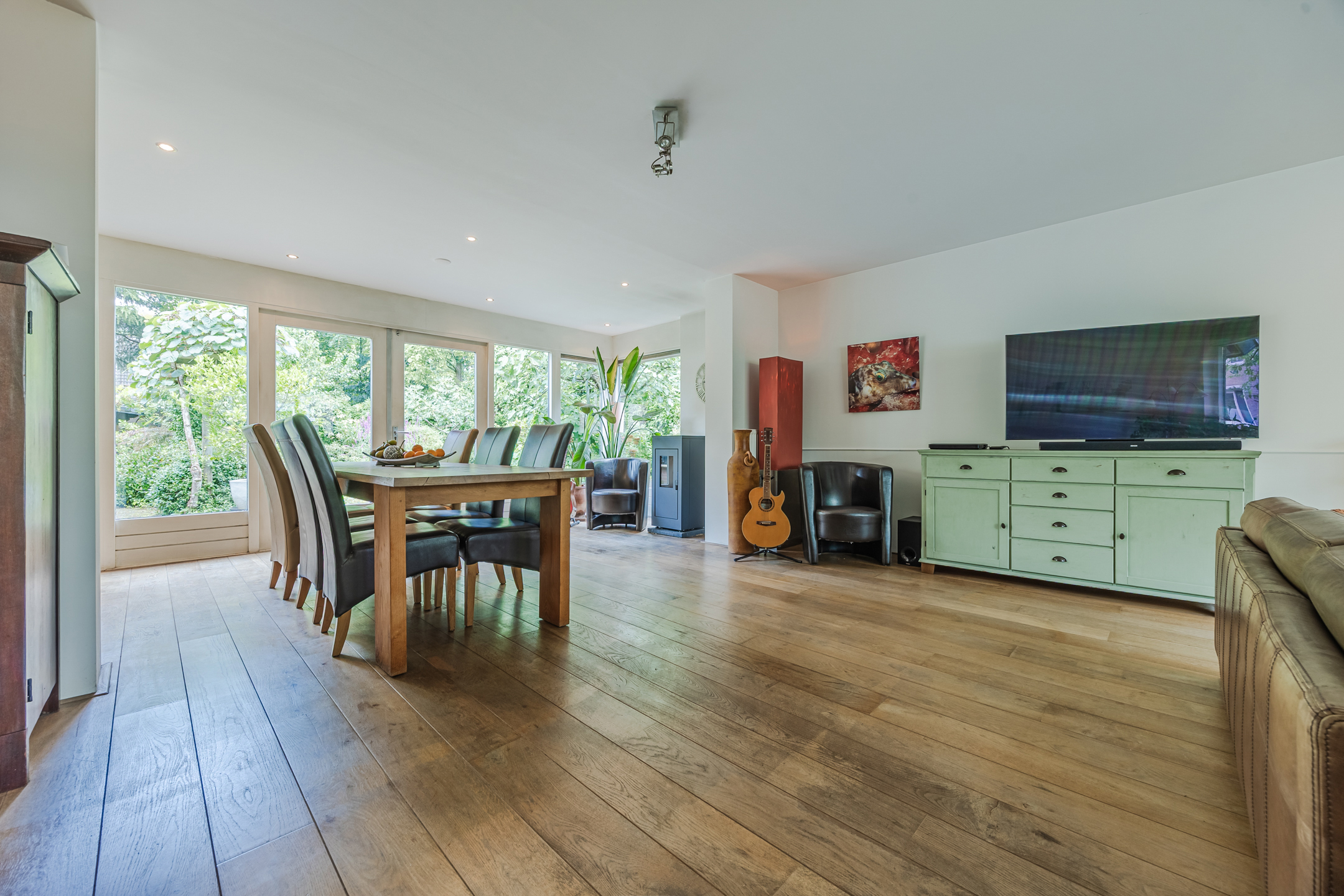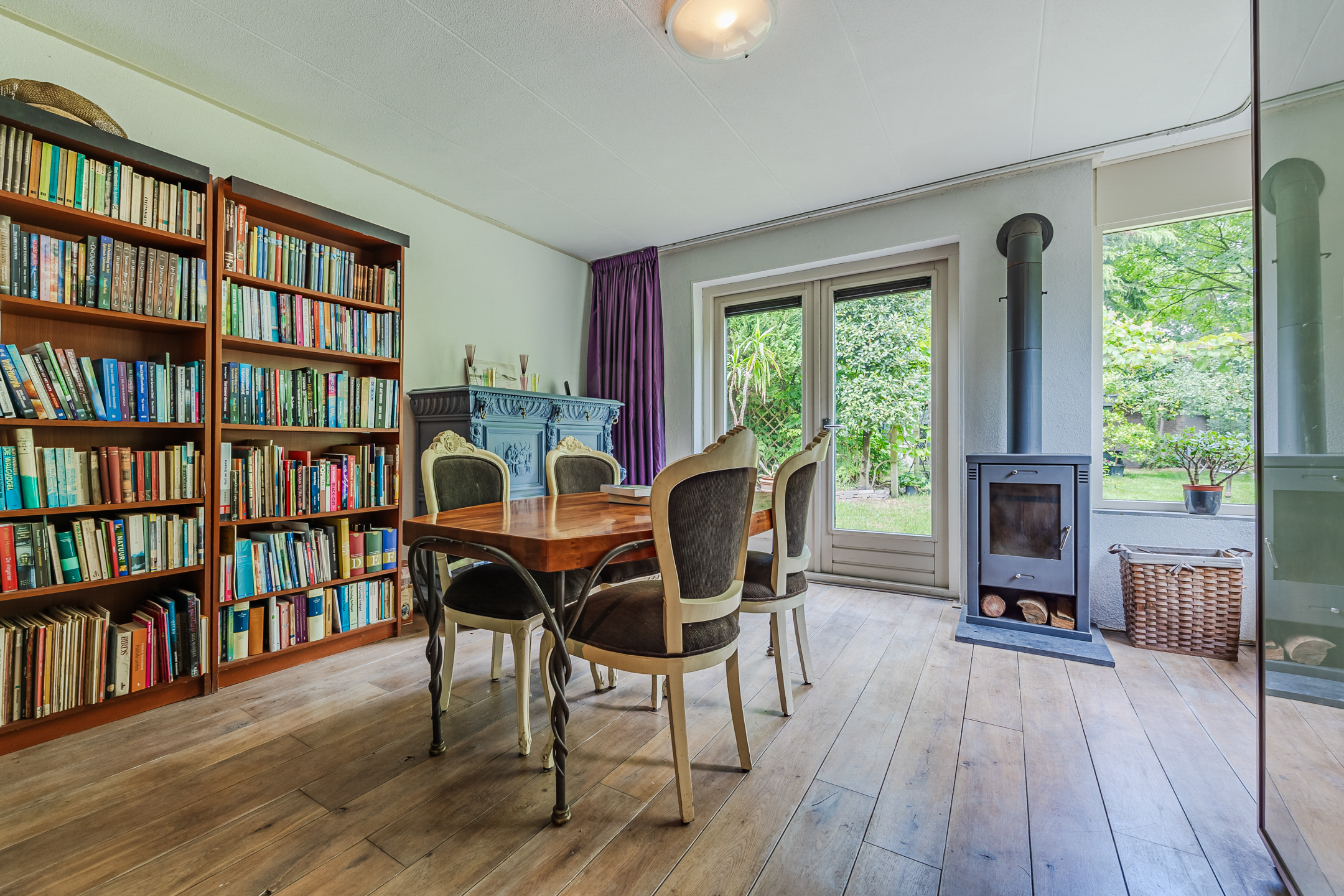 Aangrenzend bevindt zich een extra eetkamer of studeerkamer, die dankzij de houtkachel en de grote raampartijen een bijzonder warme en uitnodigende plek vormt. Deze ruimte is ideaal als thuiswerkplek, maar leent zich ook uitstekend als speelkamer of juist als intieme eetkamer. Dankzij de indeling en de mogelijkheden van de begane grond is dit een woning die zich moeiteloos aanpast aan jouw persoonlijke woonstijl.