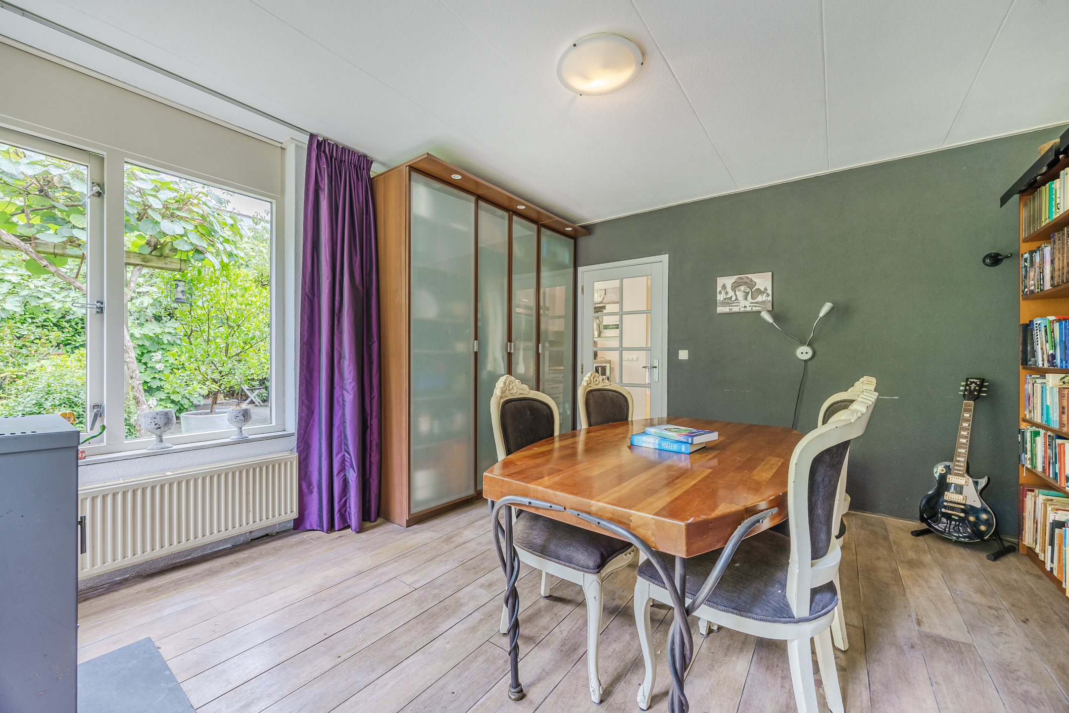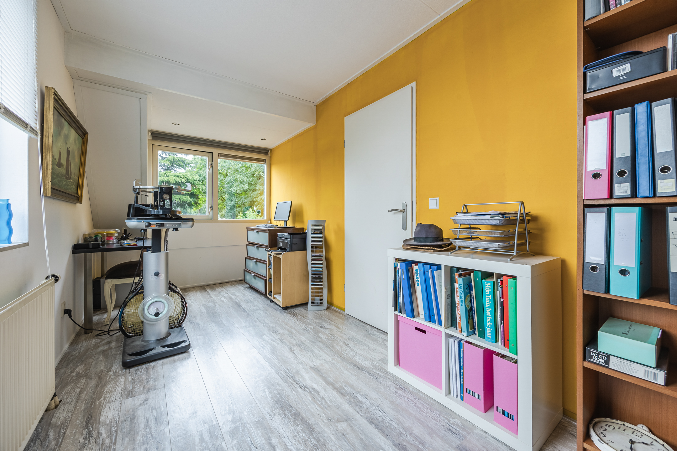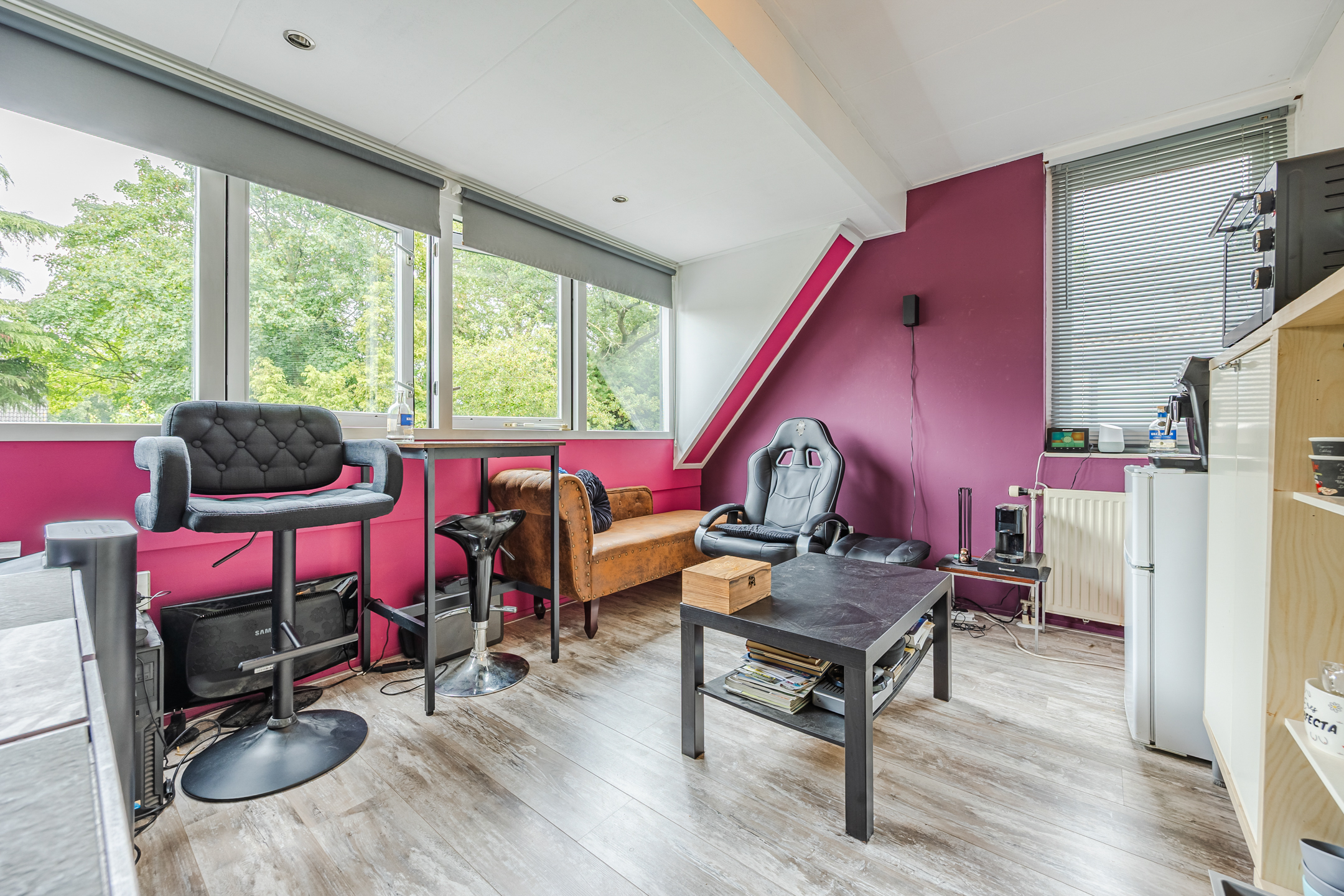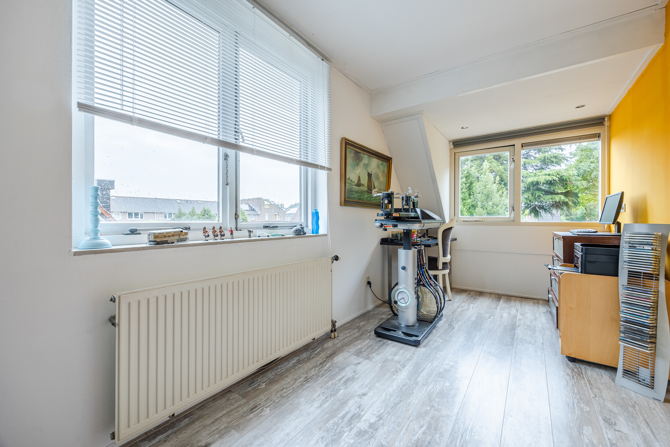 Aangrenzend bevindt zich een extra eetkamer of studeerkamer, die dankzij de houtkachel en de grote raampartijen een bijzonder warme en uitnodigende plek vormt. Deze ruimte is ideaal als thuiswerkplek, maar leent zich ook uitstekend als speelkamer of juist als intieme eetkamer. Dankzij de indeling en de mogelijkheden van de begane grond is dit een woning die zich moeiteloos aanpast aan jouw persoonlijke woonstijl.