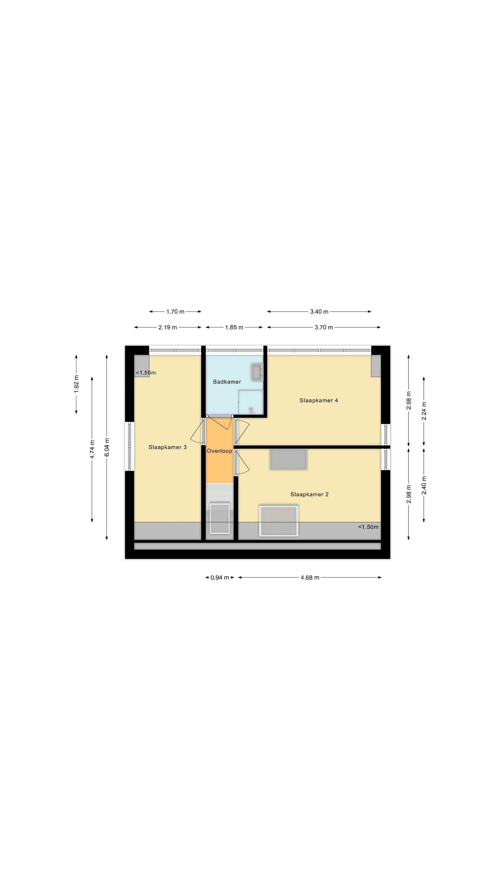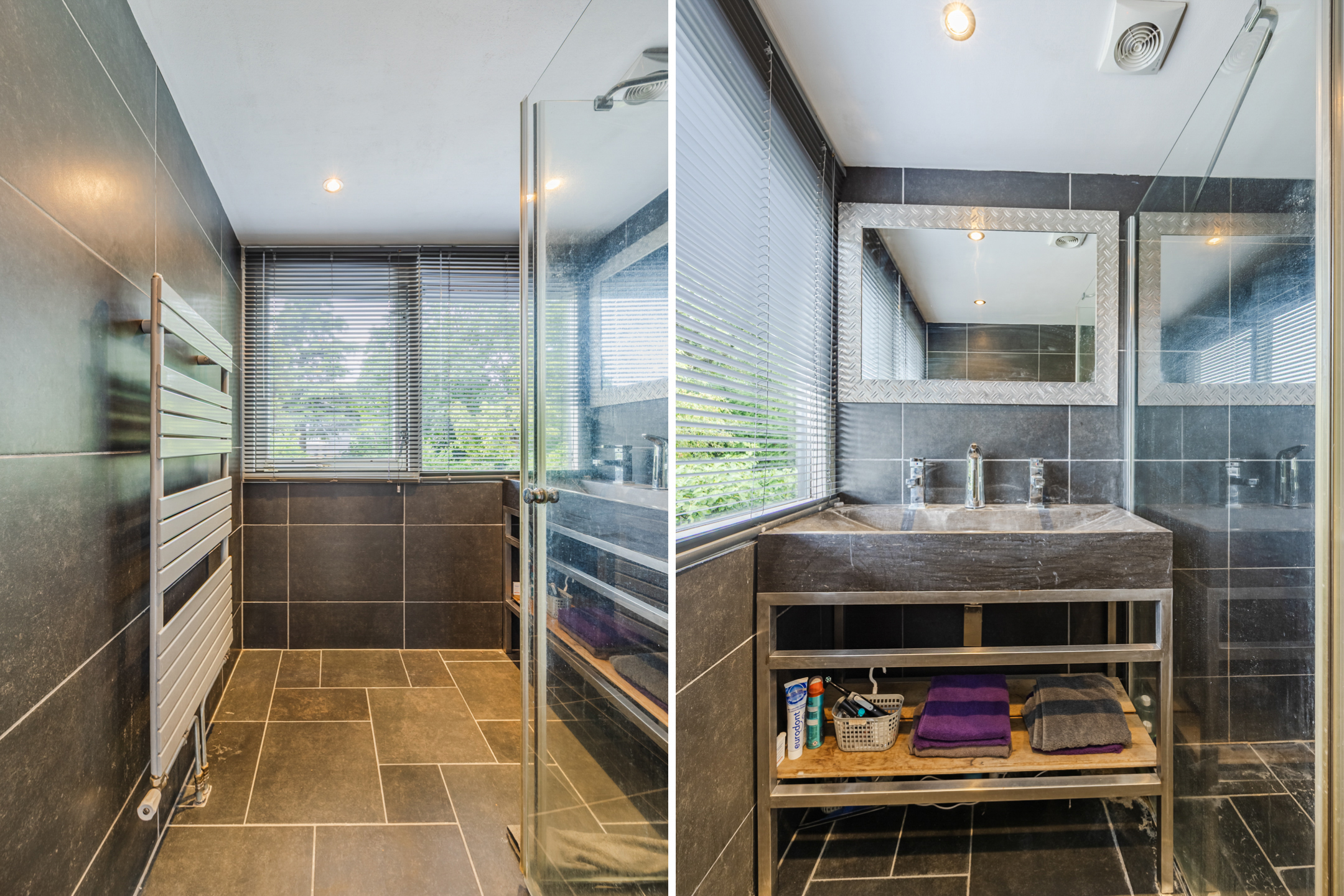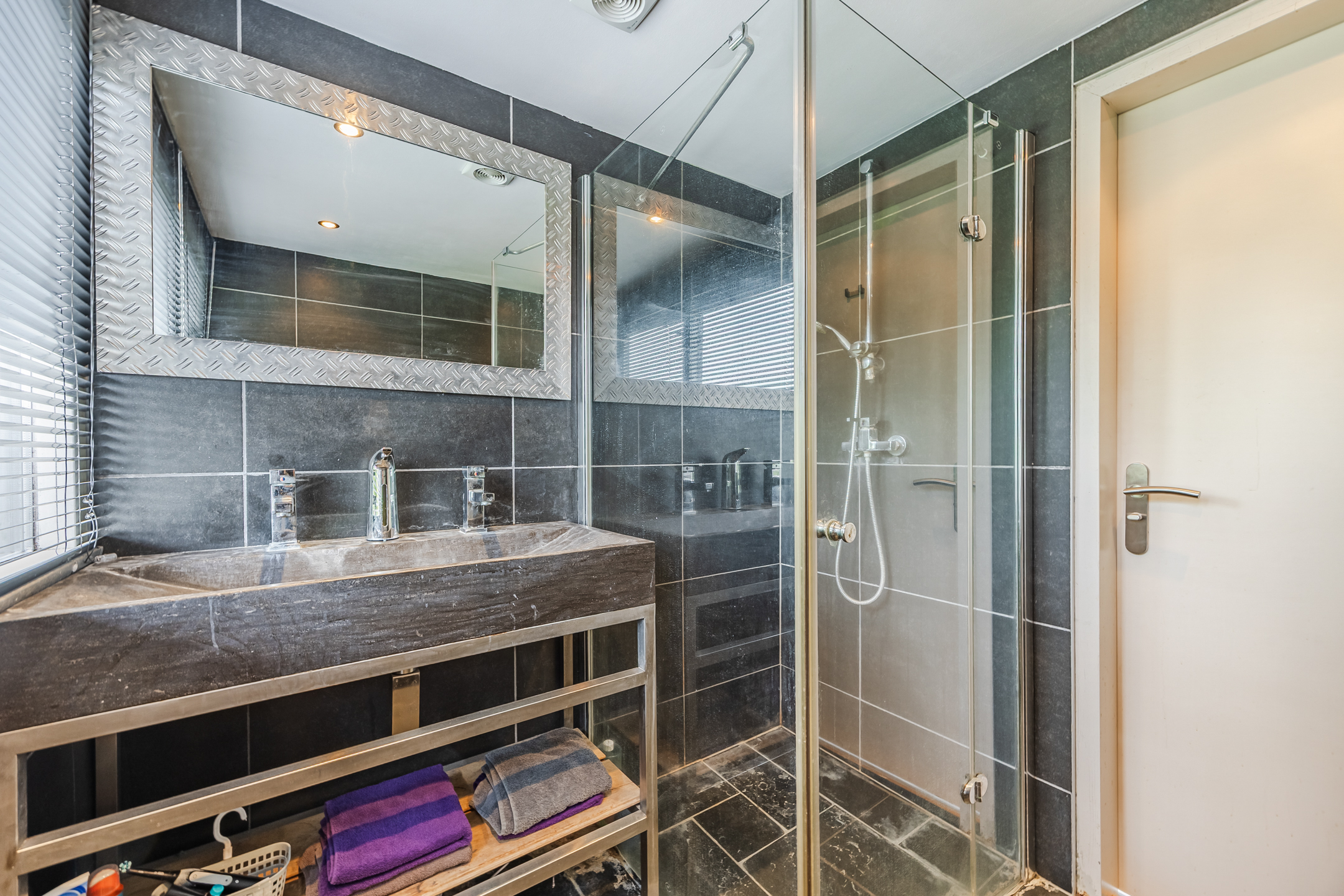 Op de eerste verdieping bevinden zich drie slaapkamers en een tweede badkamer. De kamers zijn stuk voor stuk licht en prettig van formaat. Aan de voorzijde vind je een slaapkamer met dakraam, terwijl de slaapkamer aan de achterzijde extra ruimte en lichtinval geniet dankzij de dakkapel. De derde kamer kan naar wens worden ingericht als slaap-, werk- of hobbykamer. De badkamer is compleet met een douche en wastafel, ideaal als extra gezinsbadkamer.