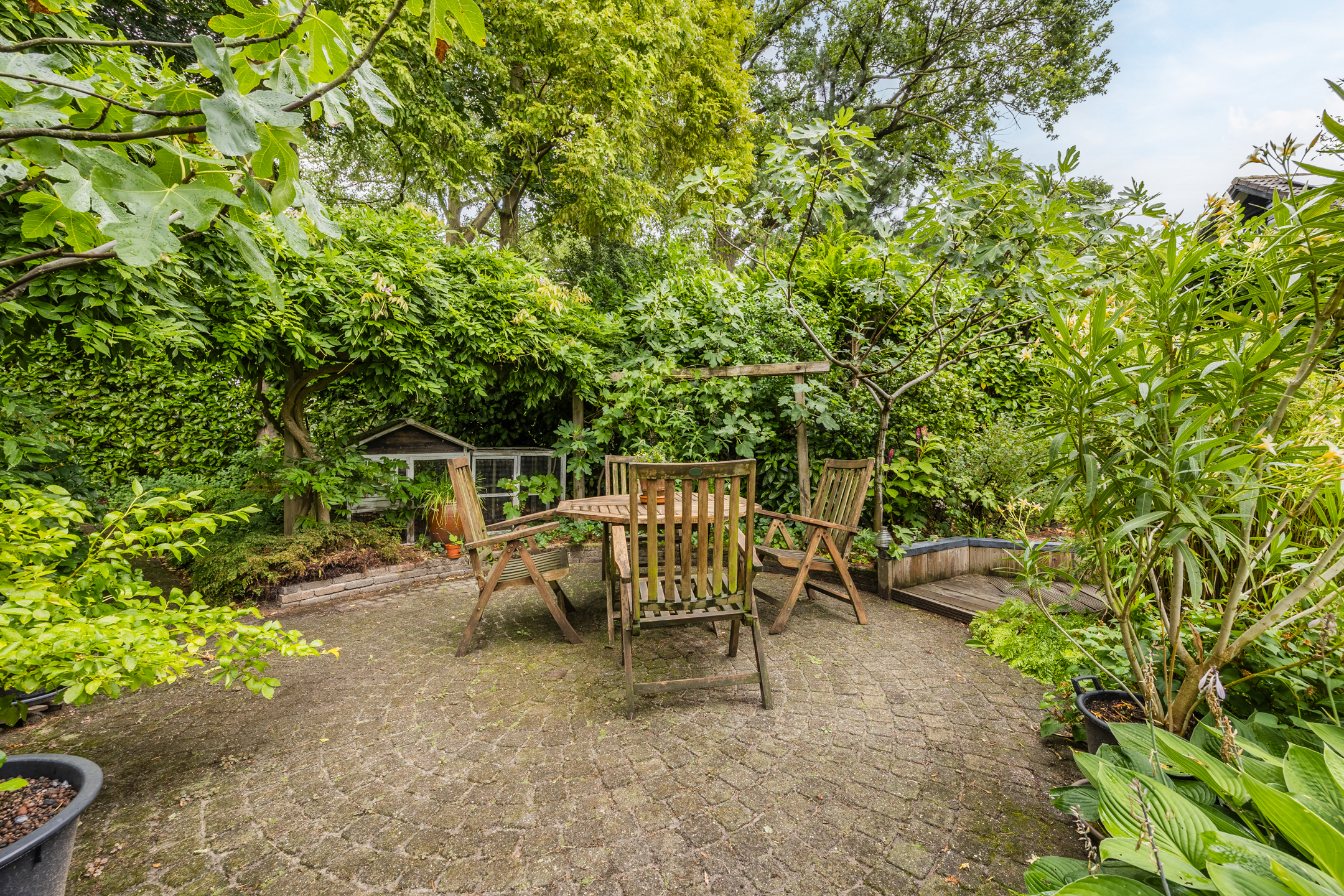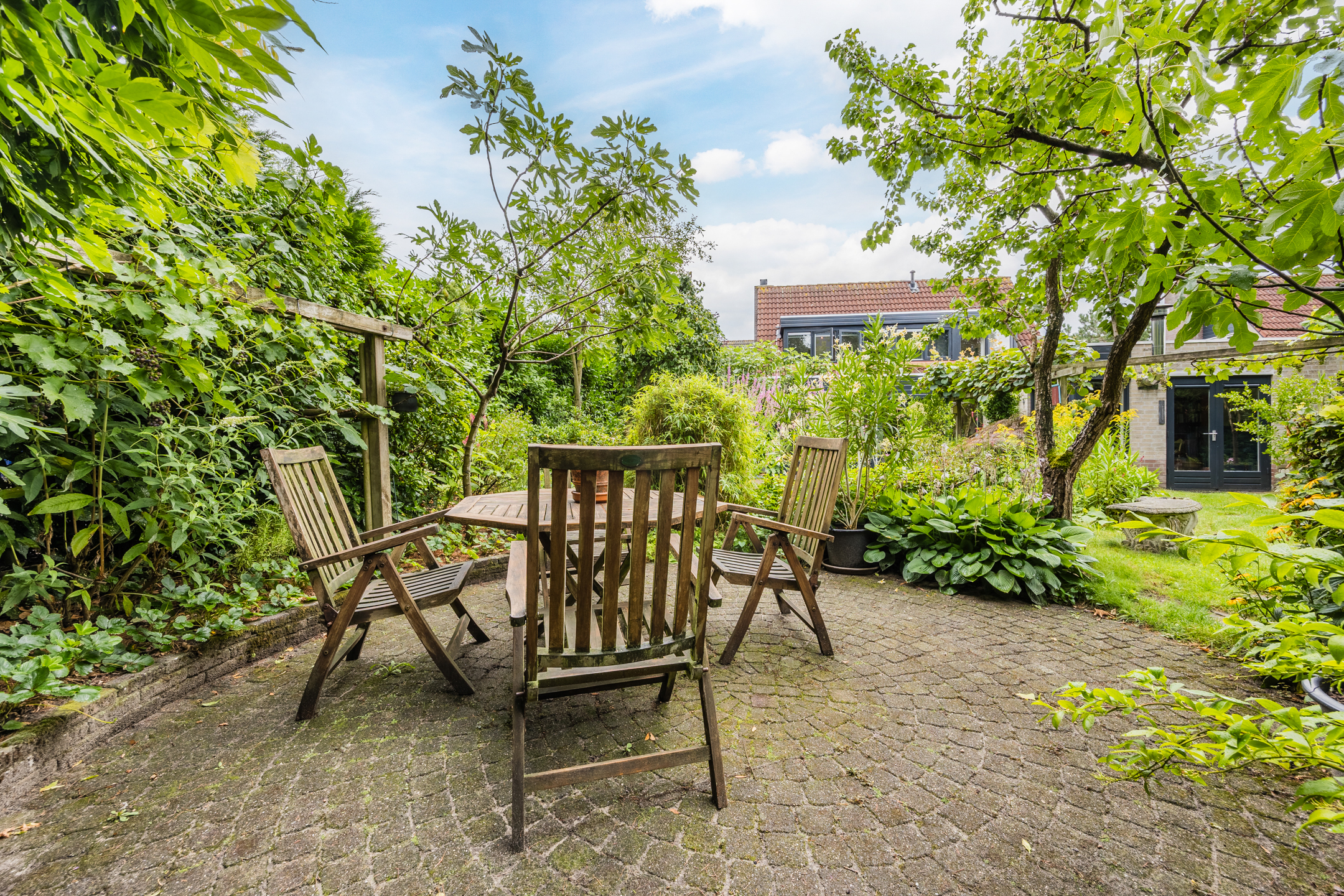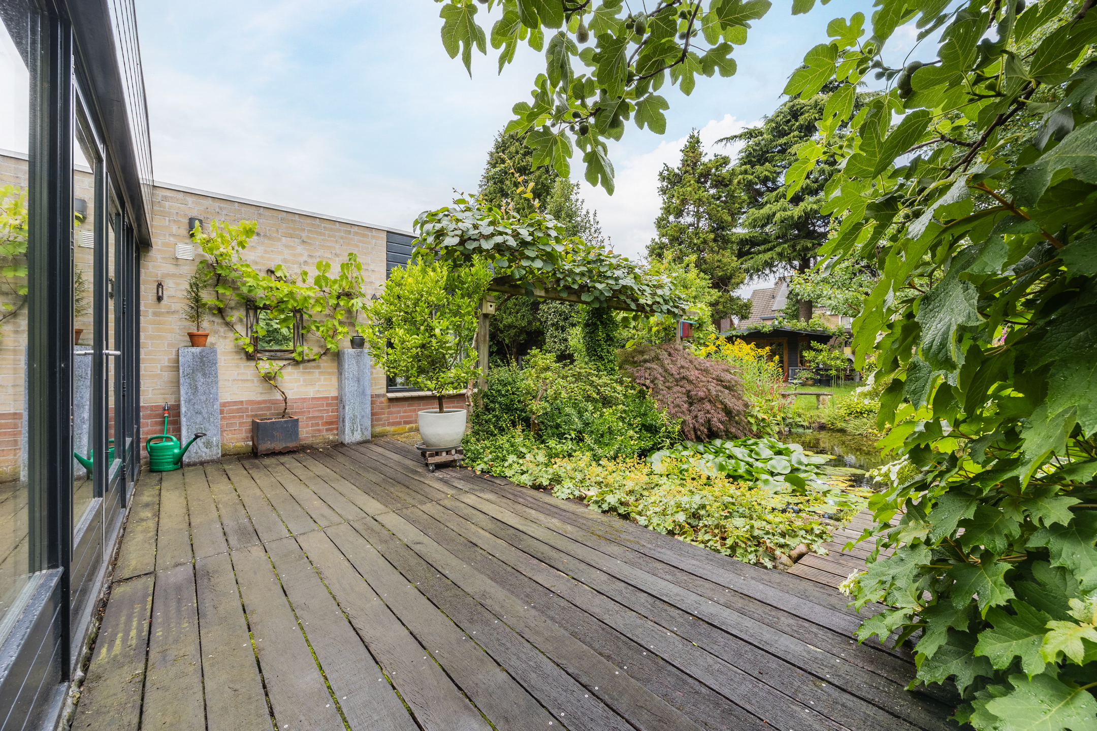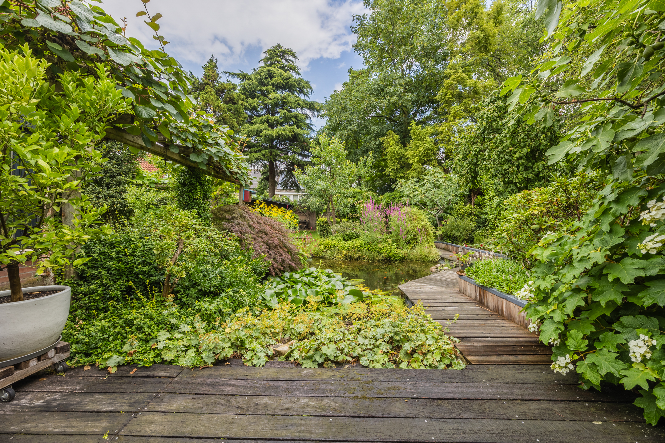 De tuin is een absoluut pluspunt. Met maar liefst 599 m² grond is er altijd plek om te ontspannen of te tuinieren. De fraai aangelegde achtertuin beschikt over een gazon, sierbestrating, vijver en diverse fruitbomen zoals vijg, druif en abrikoos. Dankzij de gunstige ligging rondom de woning geniet je de hele dag door van zon én schaduw. De oprit en afsluitbare zijtoegang maken het geheel compleet.