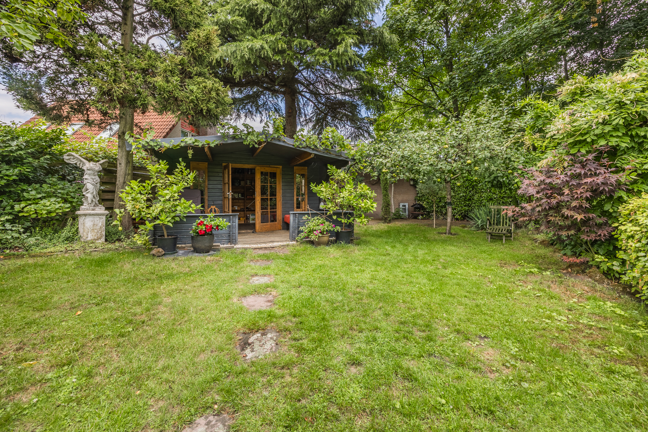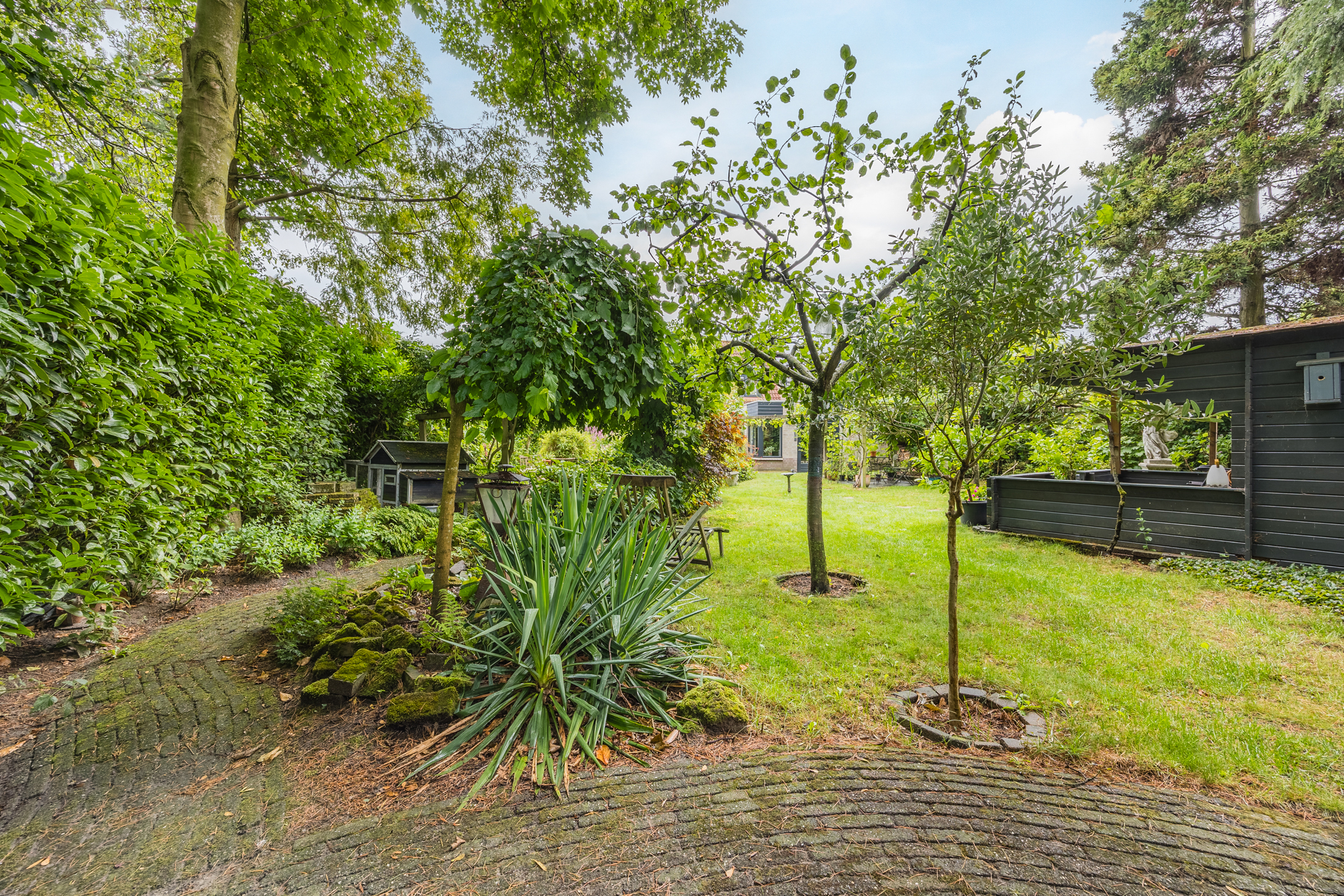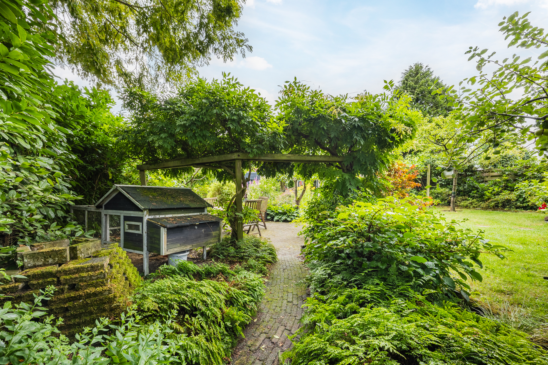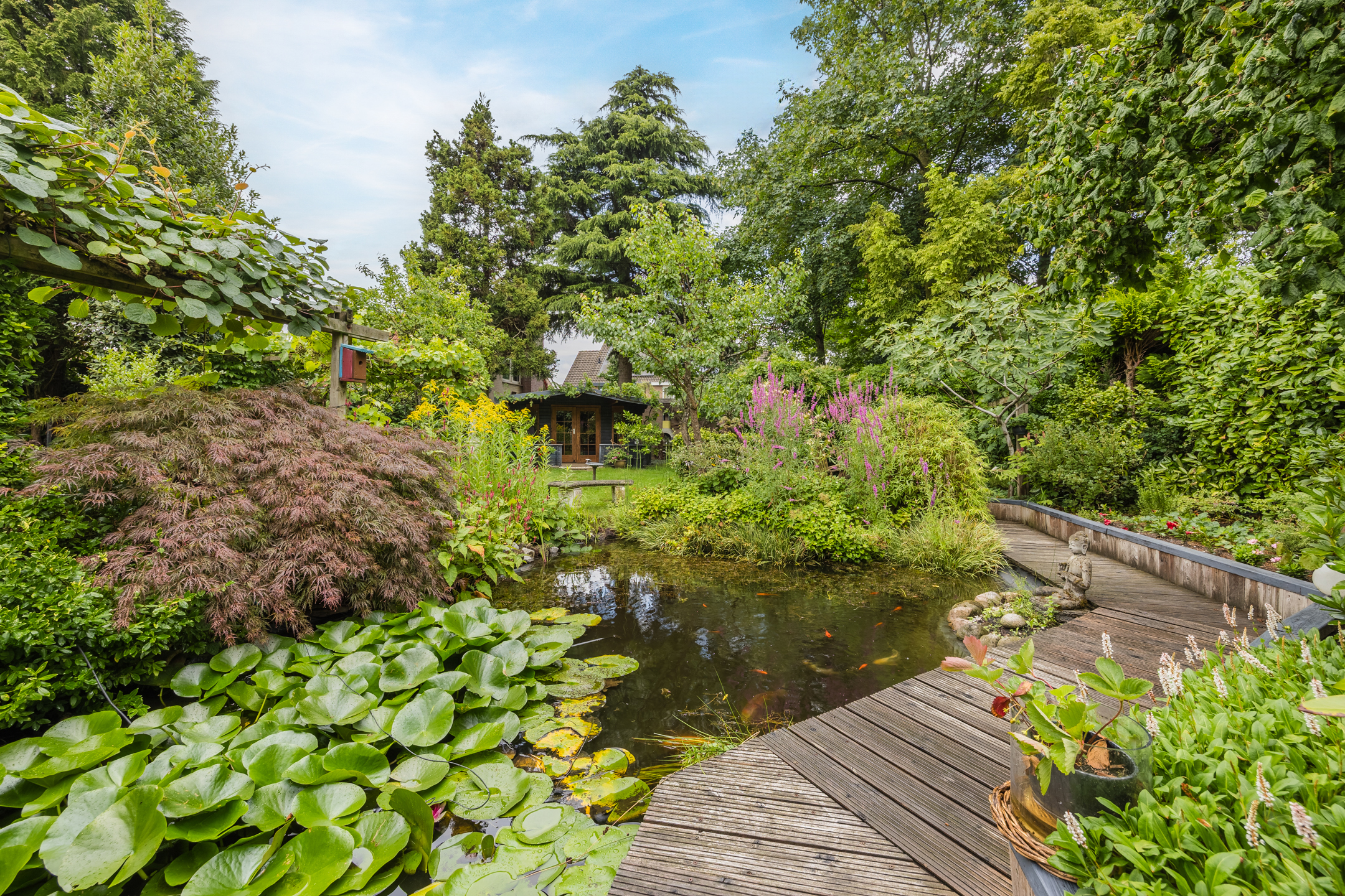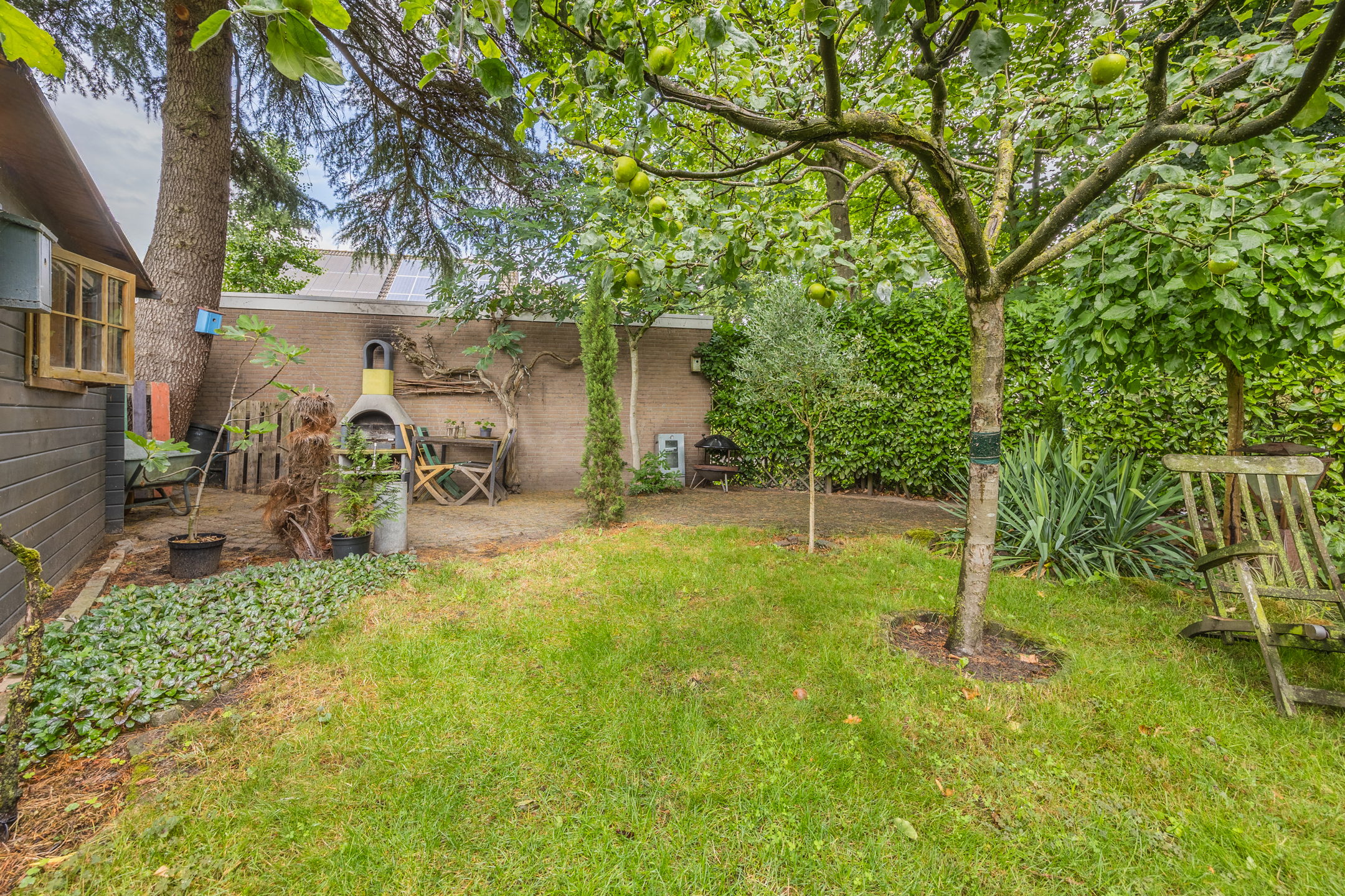 De tuin is een absoluut pluspunt. Met maar liefst 599 m² grond is er altijd plek om te ontspannen of te tuinieren. De fraai aangelegde achtertuin beschikt over een gazon, sierbestrating, vijver en diverse fruitbomen zoals vijg, druif en abrikoos. Dankzij de gunstige ligging rondom de woning geniet je de hele dag door van zon én schaduw. De oprit en afsluitbare zijtoegang maken het geheel compleet.