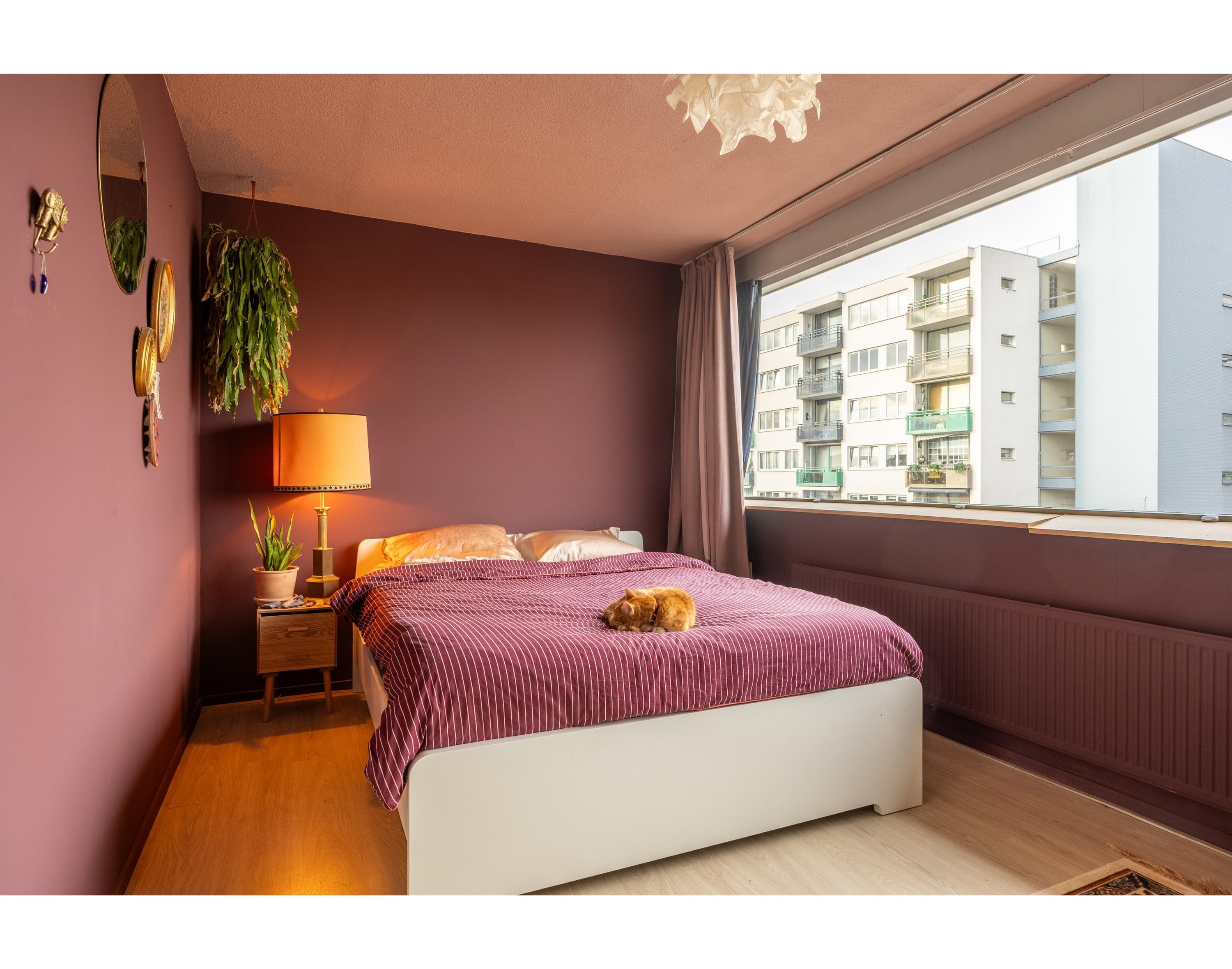 De slaapkamer aan de voorzijde is ruim opgezet en beschikt over veel lichtinval en een Frans balkon. De tweede slaapkamer is gelegen aan de achterzijde en biedt eveneens een prettig formaat.