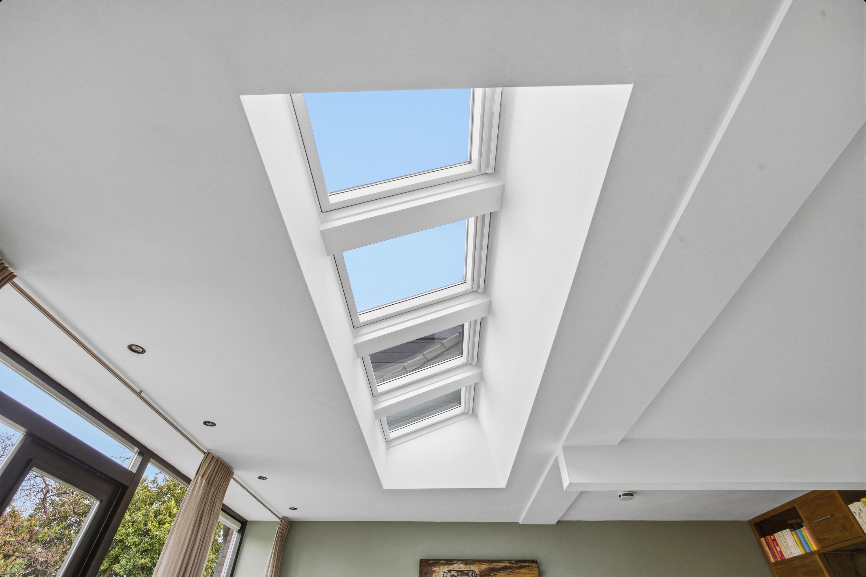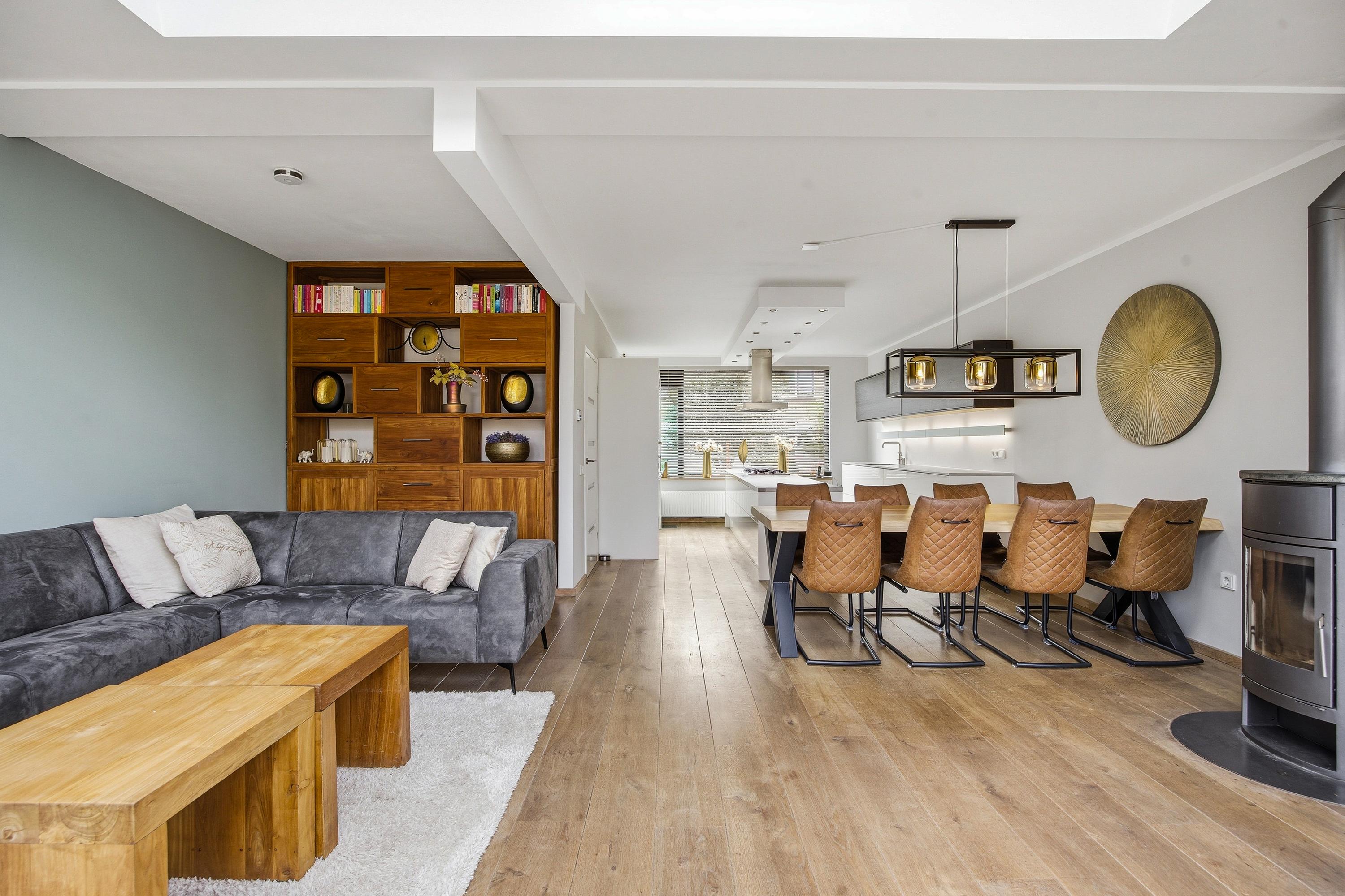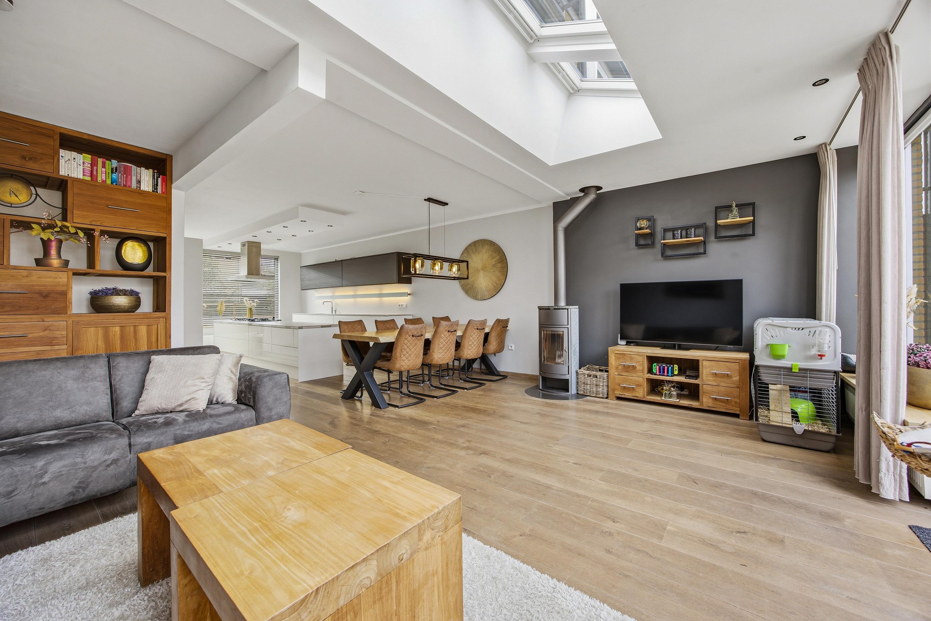 De uitgebouwde woonkamer is een echte leefruimte: royaal, licht en perfect in te delen. De lichtstraat en grote raampartijen aan voor- en achterzijde zorgen voor een prettige lichtinval en een open sfeer. Hier ervaar je direct de ruimte die deze woning te bieden heeft.