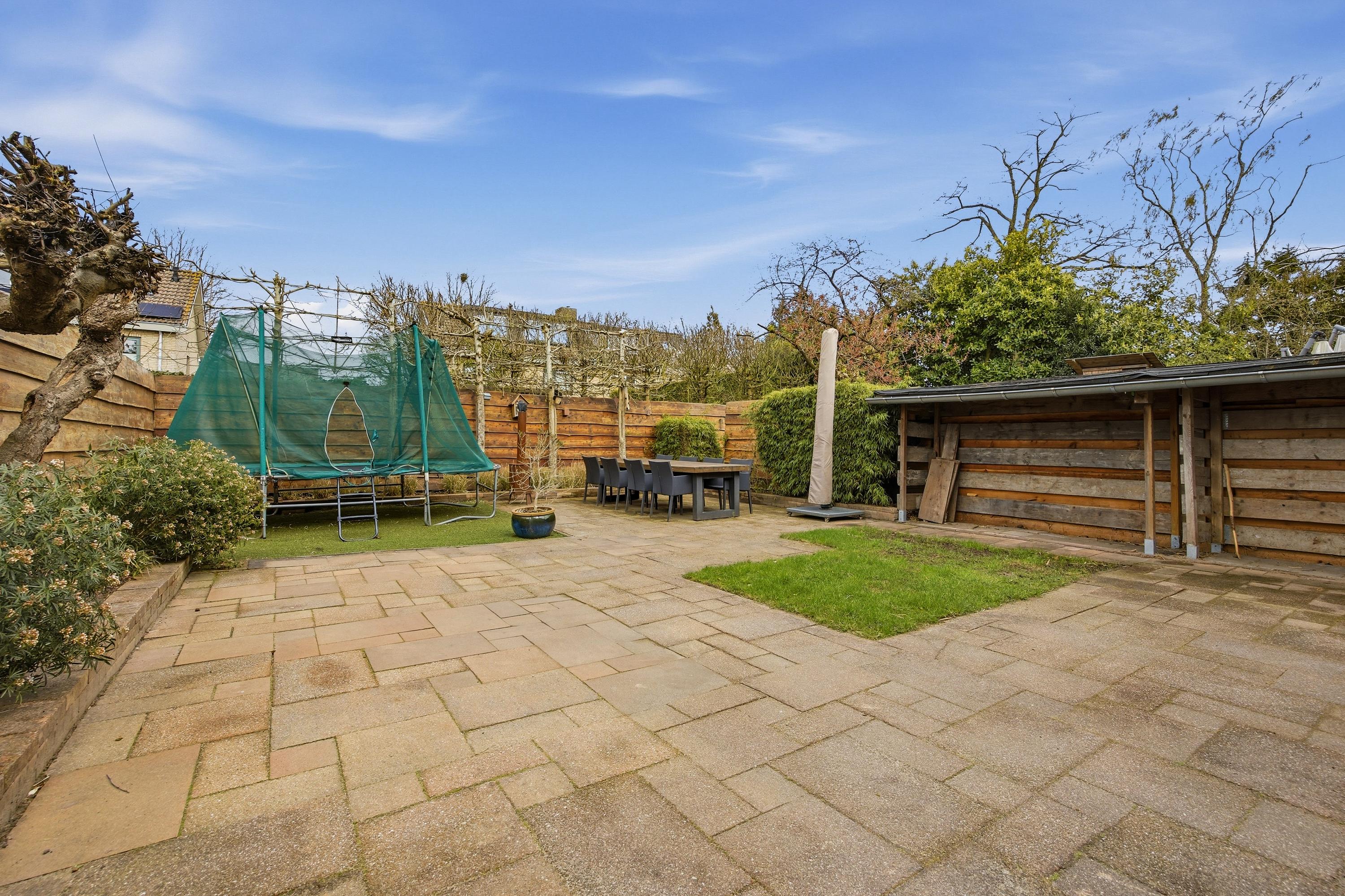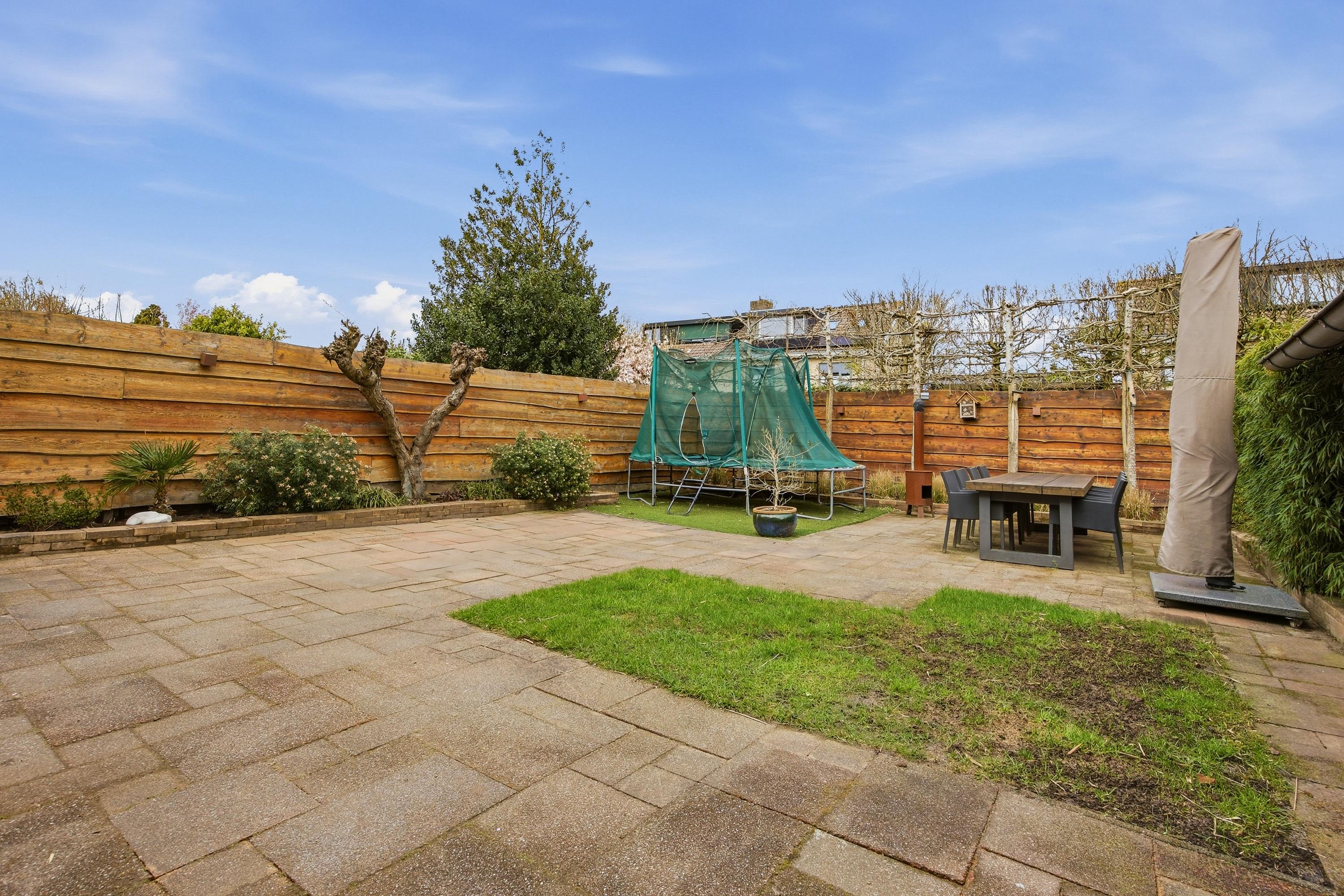 De woning beschikt over een verzorgde voor- en achtertuin. De achtertuin ligt op het noordoosten, maar door de royale afmetingen is er altijd wel een plek in de zon of schaduw te vinden, ideaal op warme dagen.