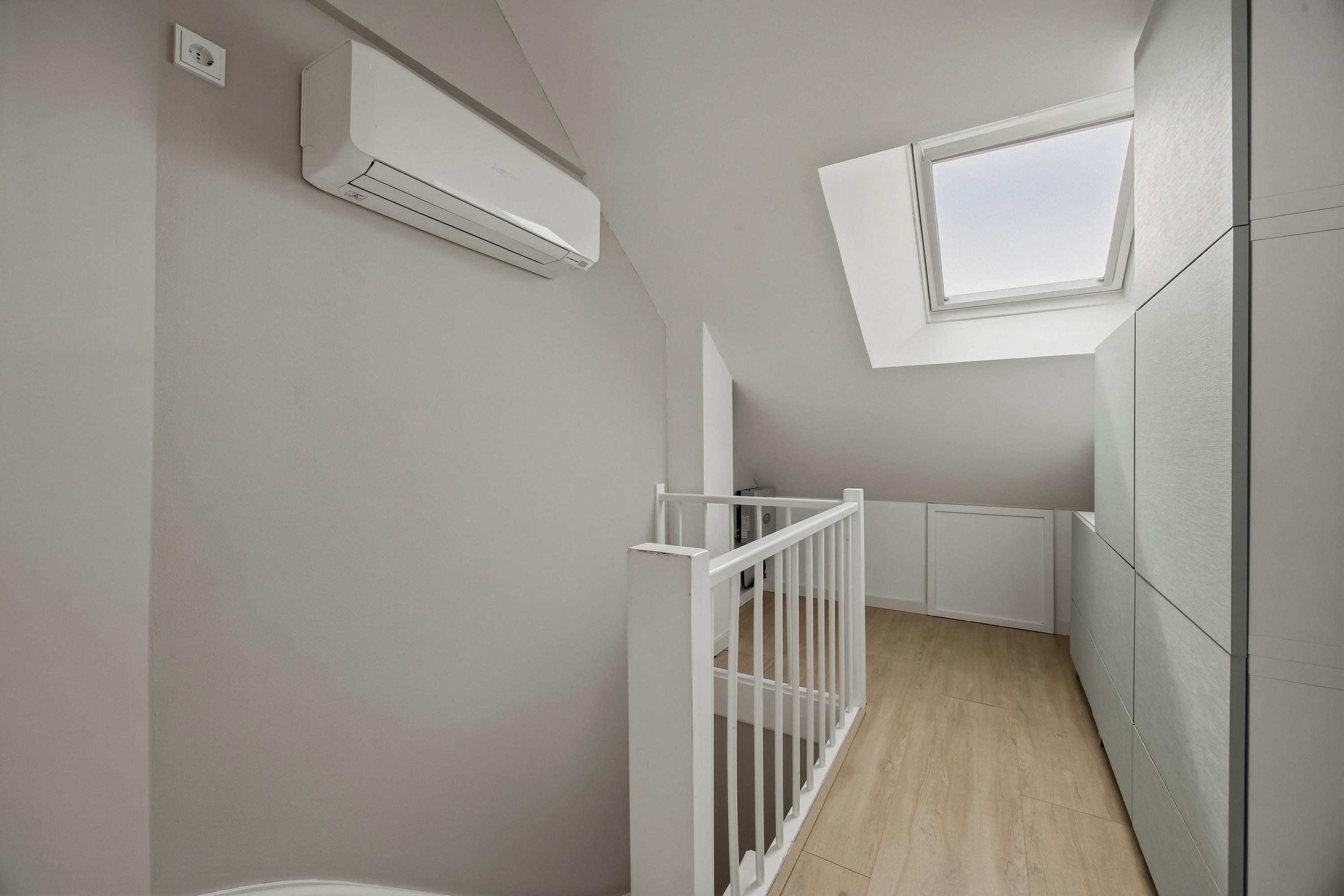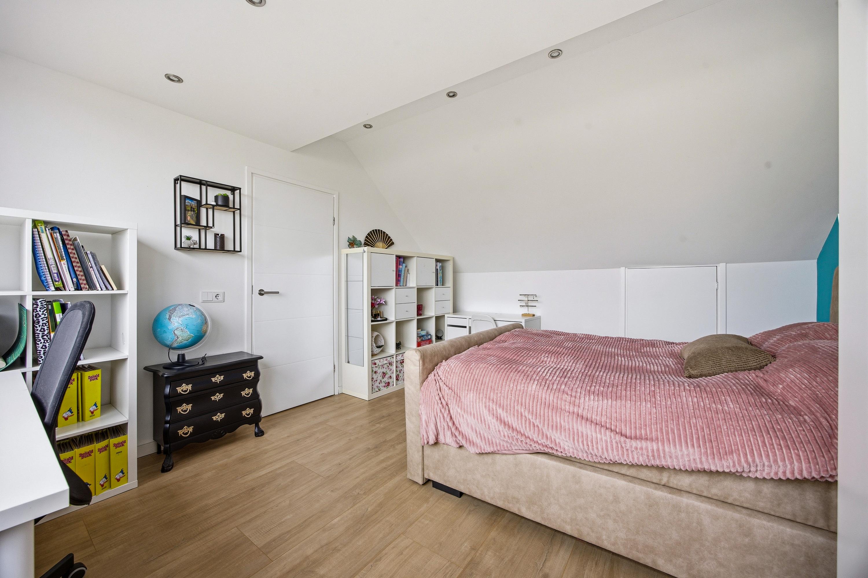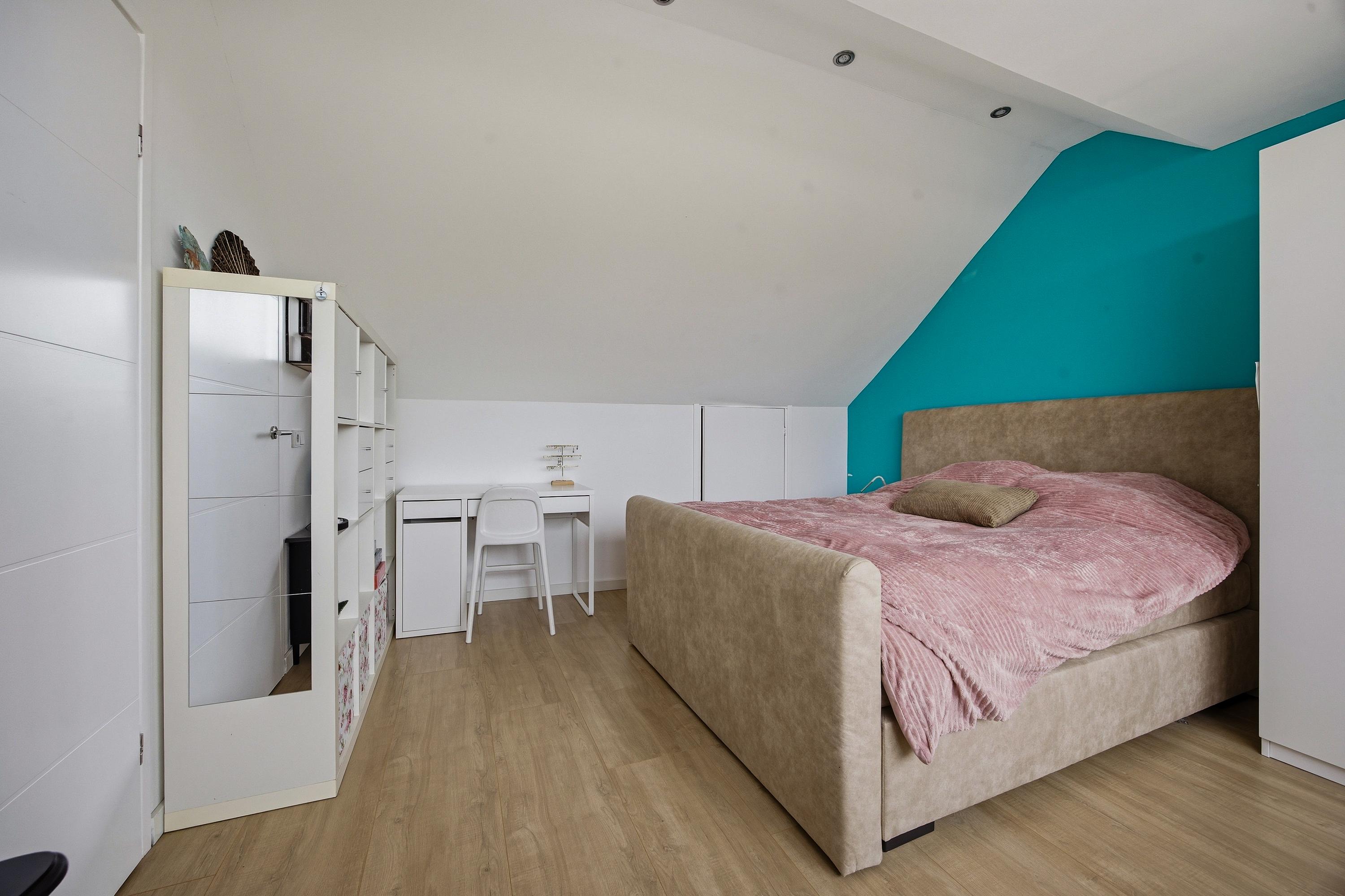 De tweede verdieping biedt nog eens extra ruimte. Hier vind je een vierde slaapkamer met een brede dakkapel aan de achterzijde en praktische bergruimte achter de knieschotten. Hier is tevens een tweede airconditioning, zodat ook de zolder heerlijk koel of warm is.
