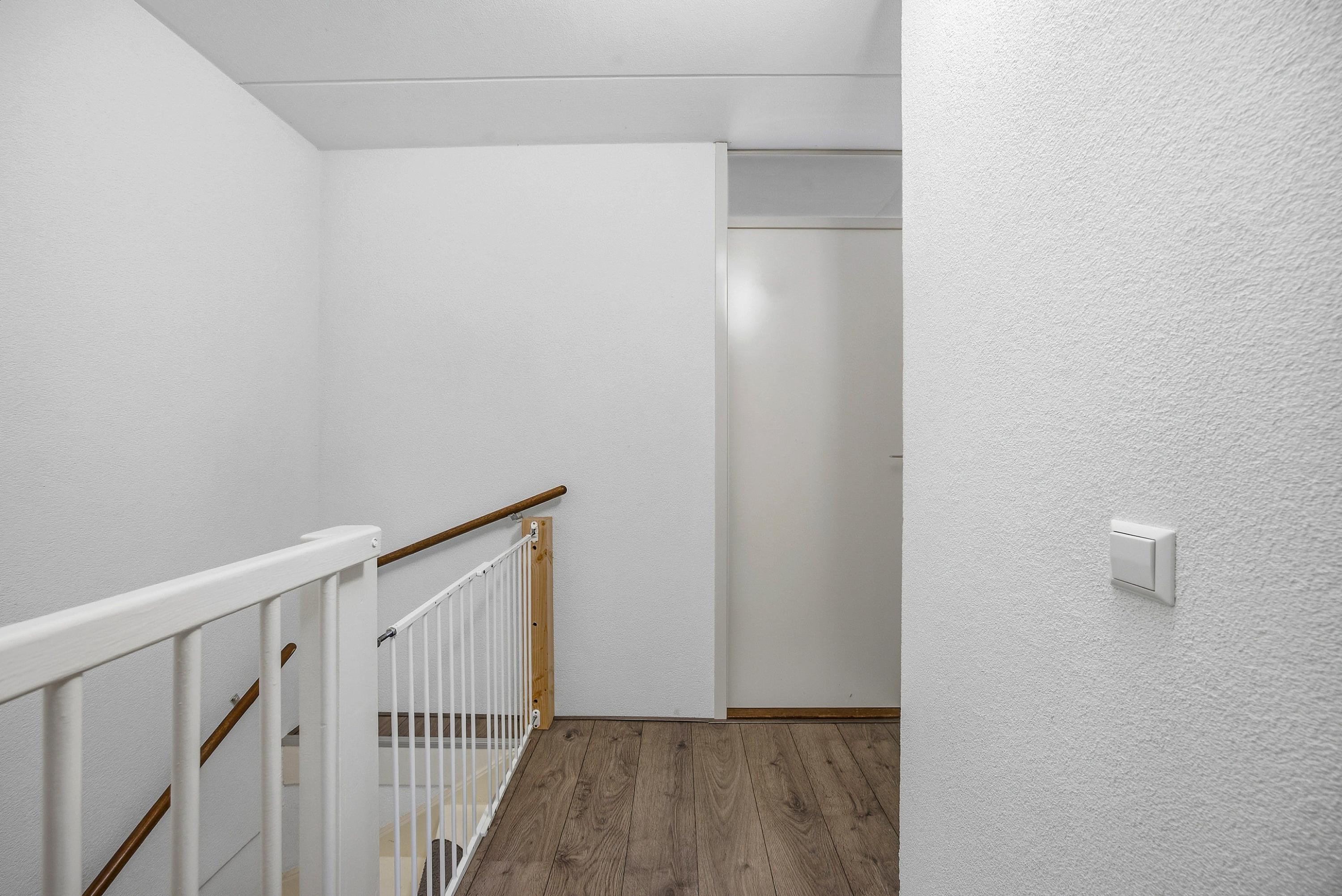 De overloop geeft toegang tot drie ruime slaapkamers en de moderne badkamer.