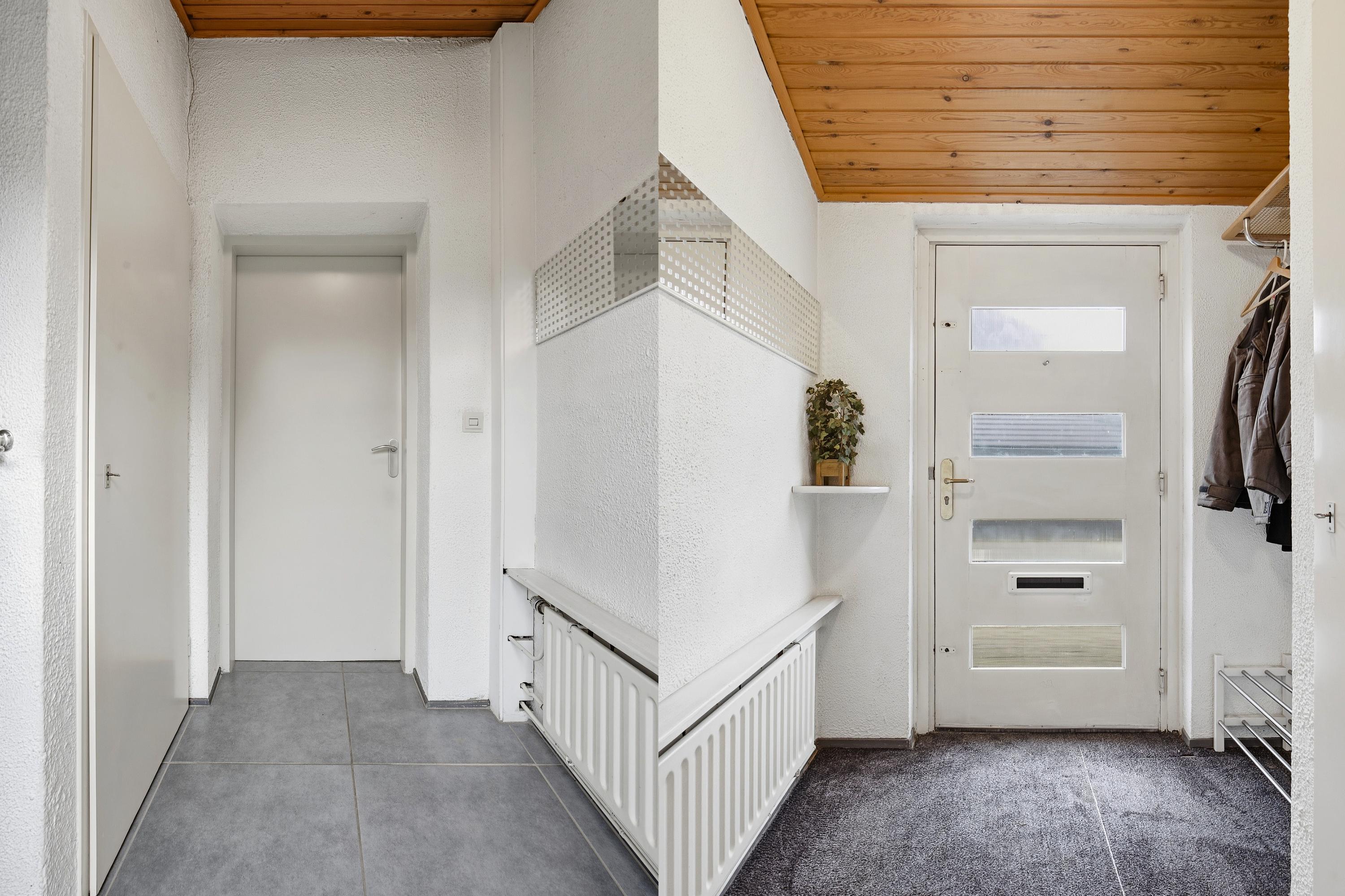 Via de voortuin met oprit kom je in de entree, voorzien van een tegelvloer met grote inloopmat, een garderobenis en de meterkast. Vanuit de hal is er toegang tot de ruime woonkamer.