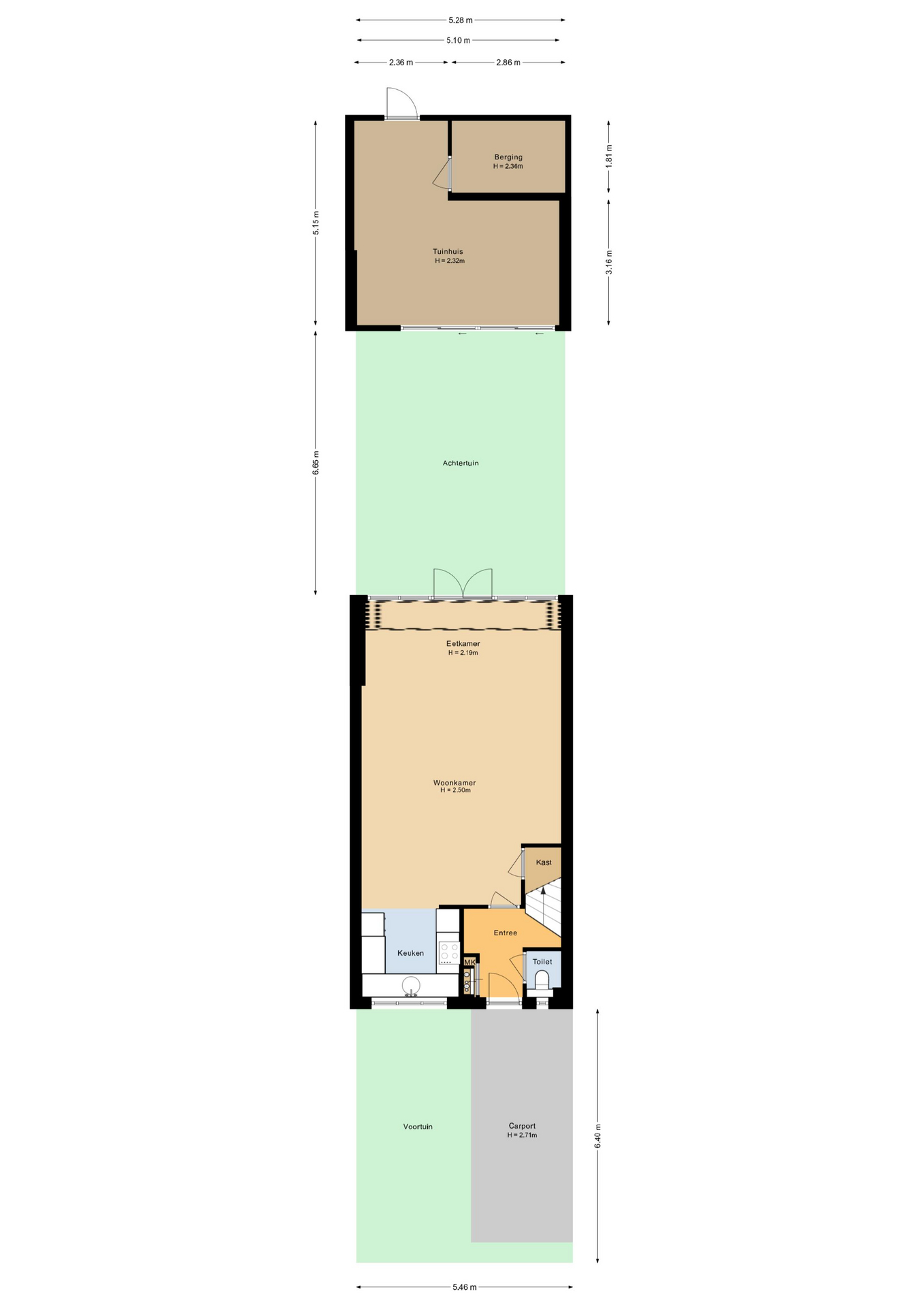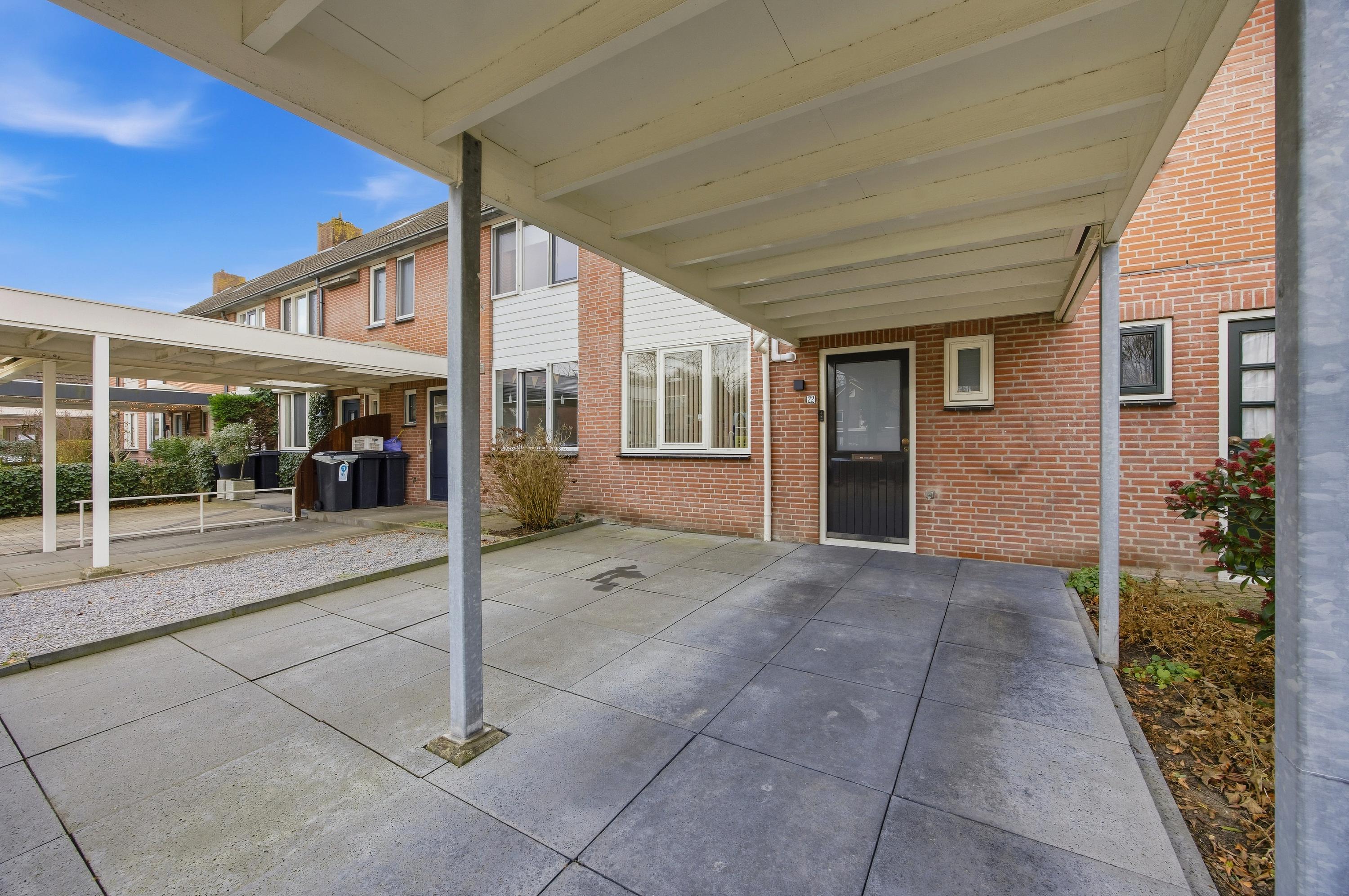 De woning beschikt tevens over een ruime voortuin en eigen carport met parkeergelegenheid op eigen terrein.