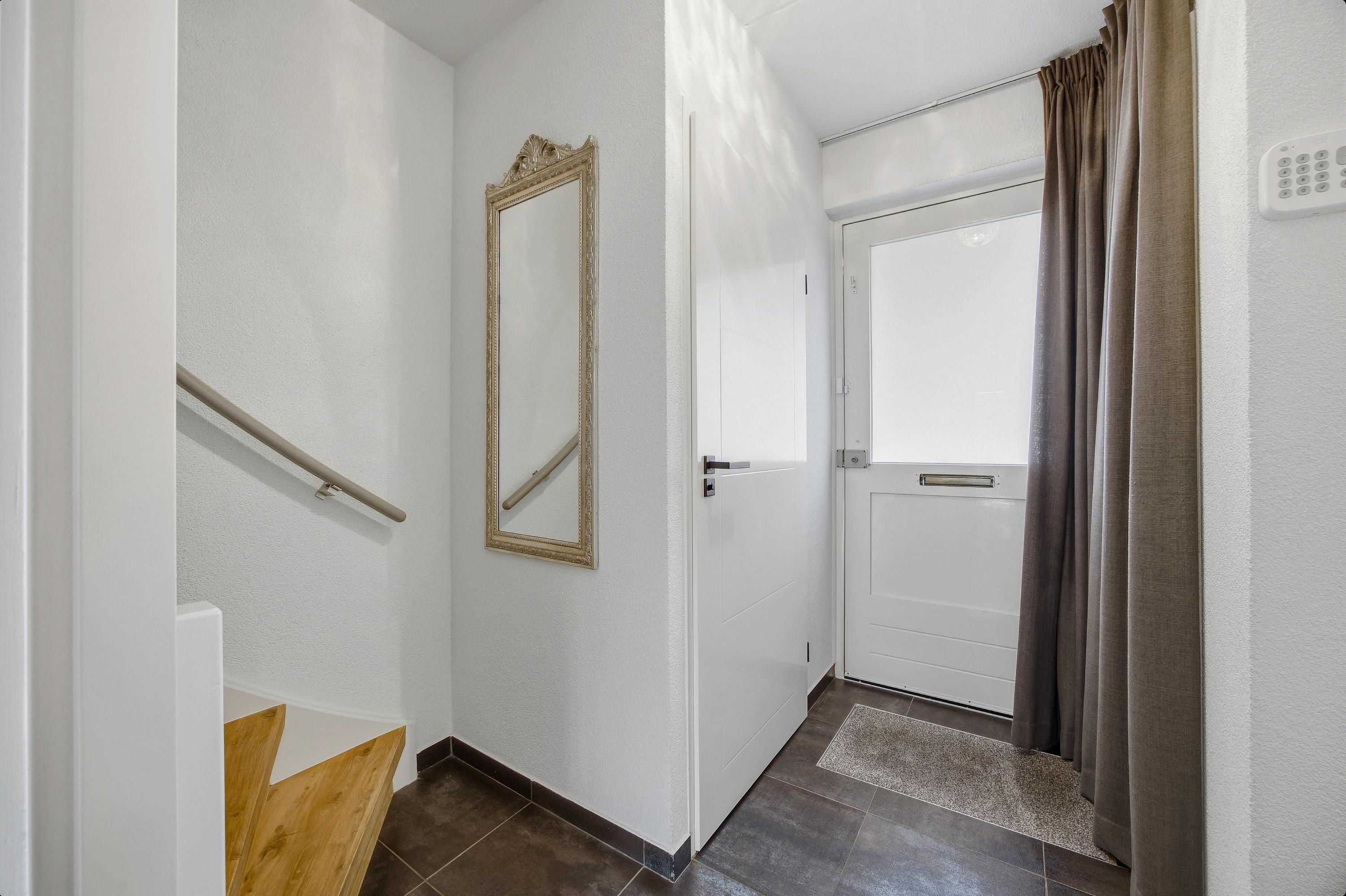 Via de entree betreedt u de woning. In de royale hal bevinden zich het toilet, de vernieuwde meterkast, de trapopgang naar de eerste verdieping en toegang tot de woonkamer.