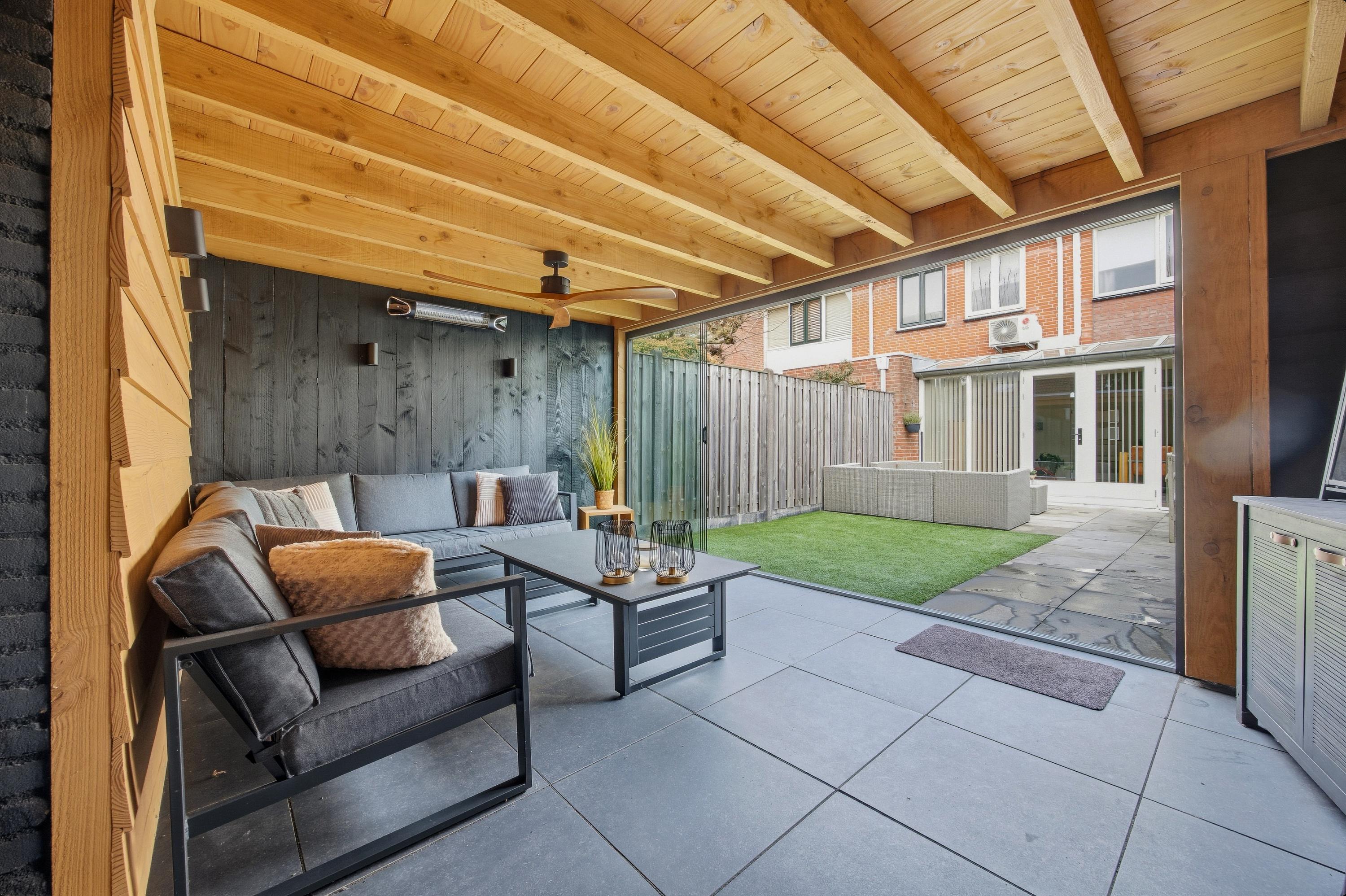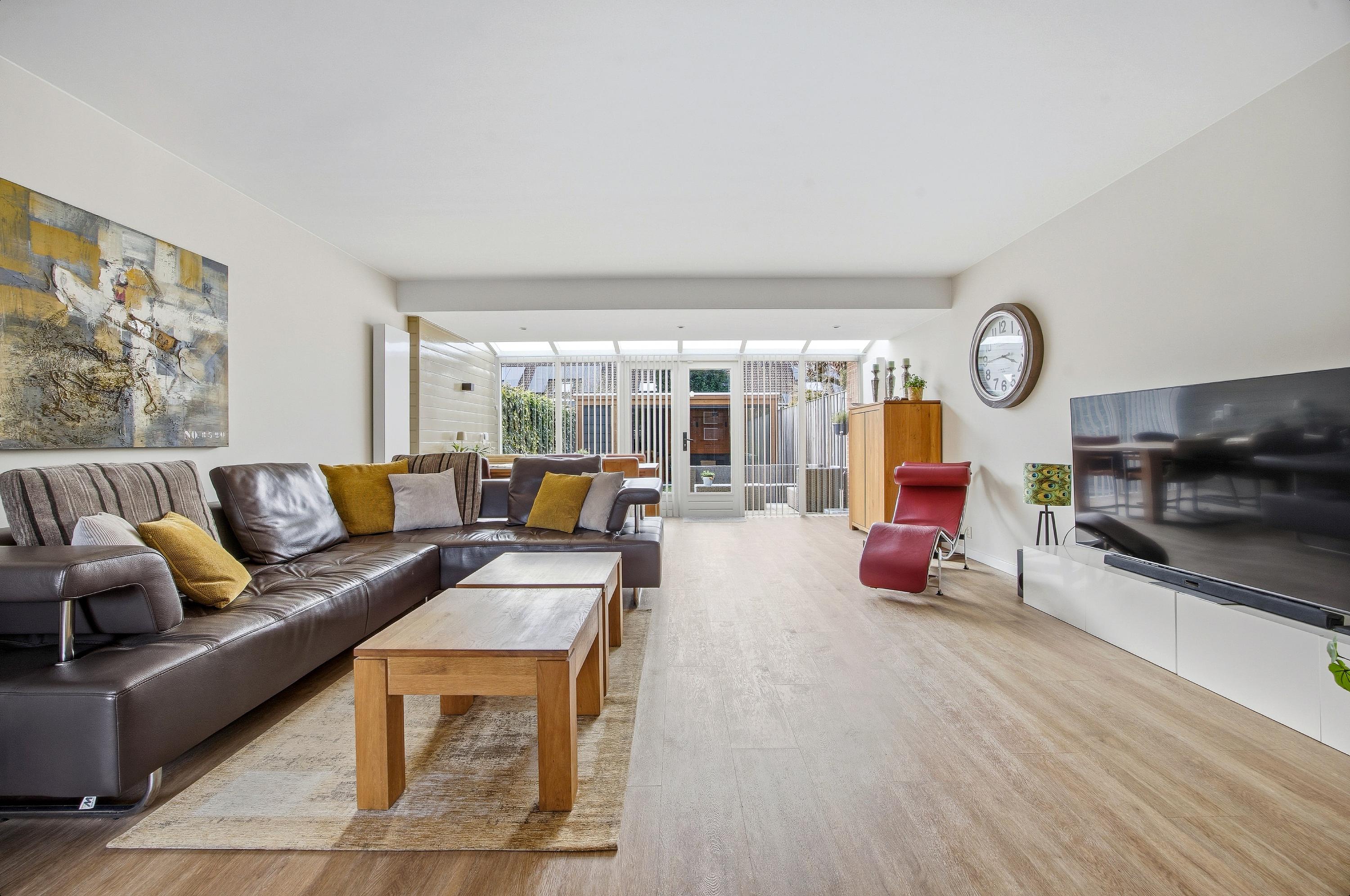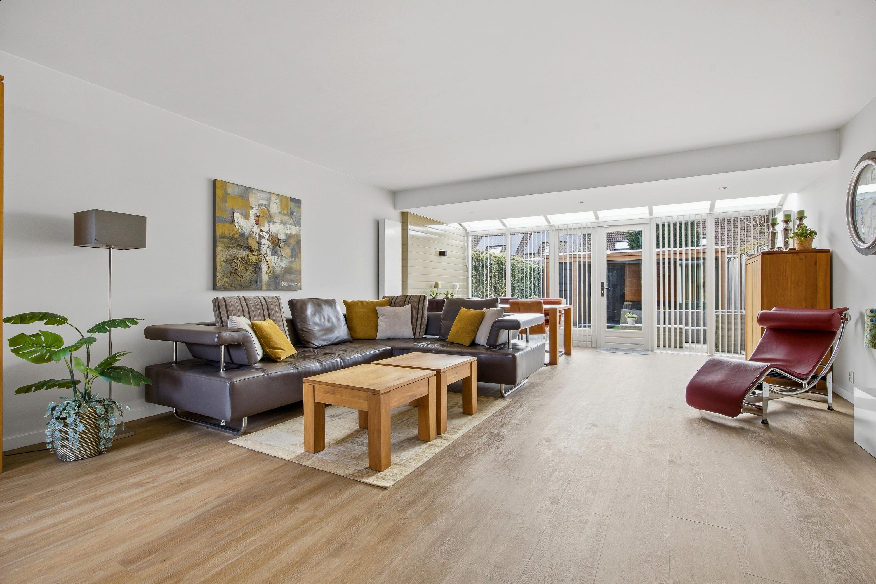 - Lichte, tuingerichte woonkamer met uitbouw