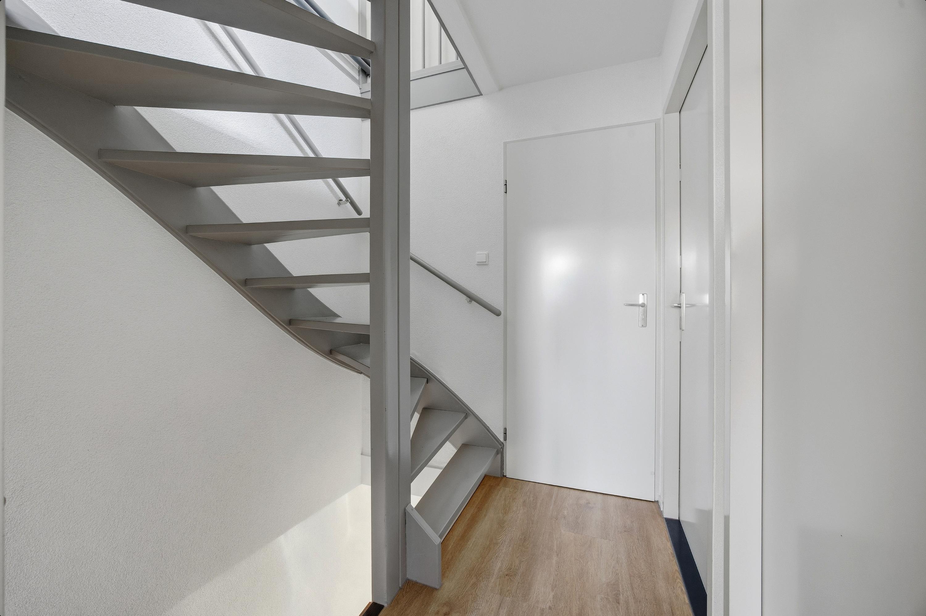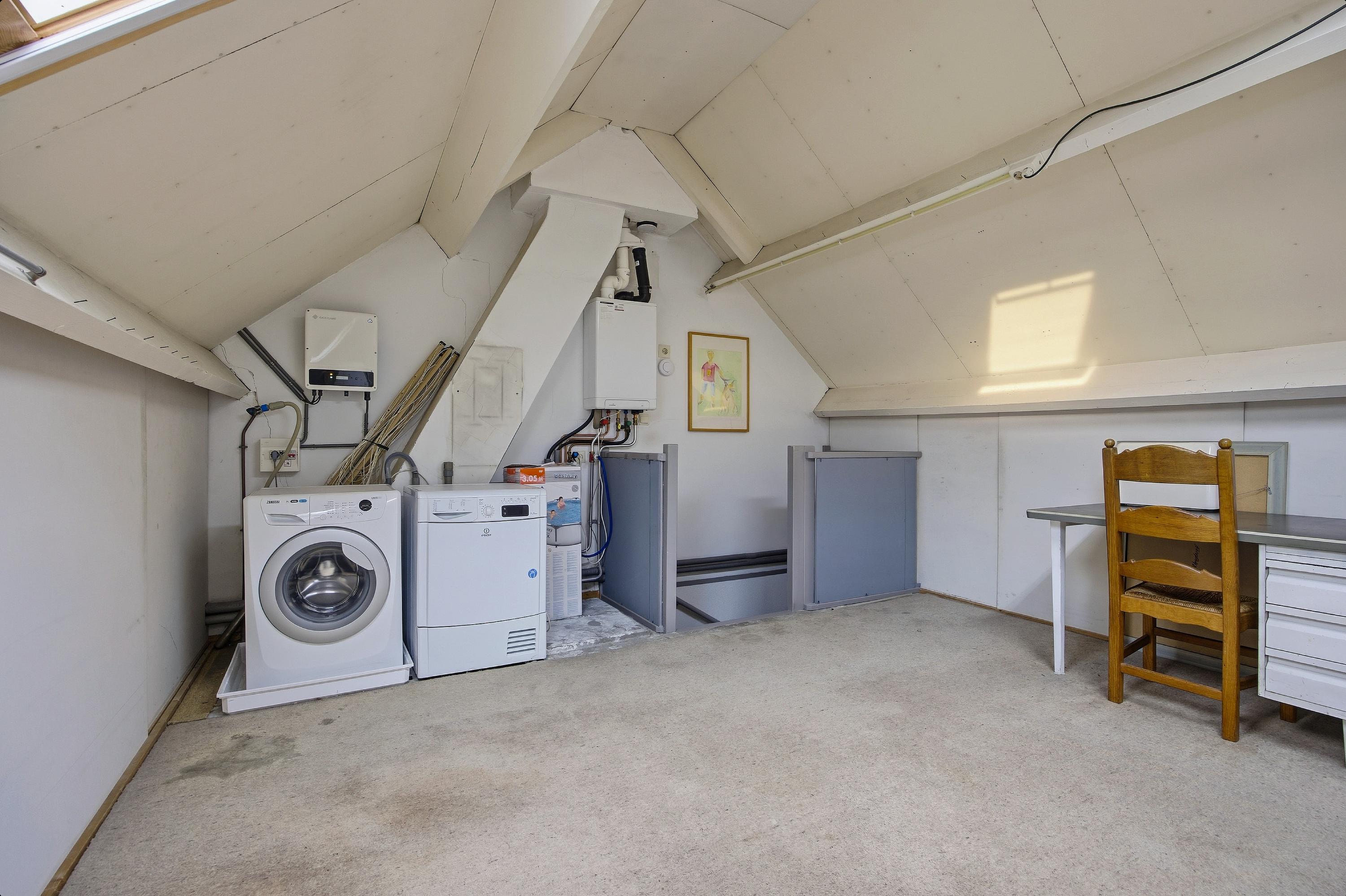 Op de voorzolder bevinden zich de Intergas HR-combiketel (2014) en de aansluitingen voor de wasmachine.