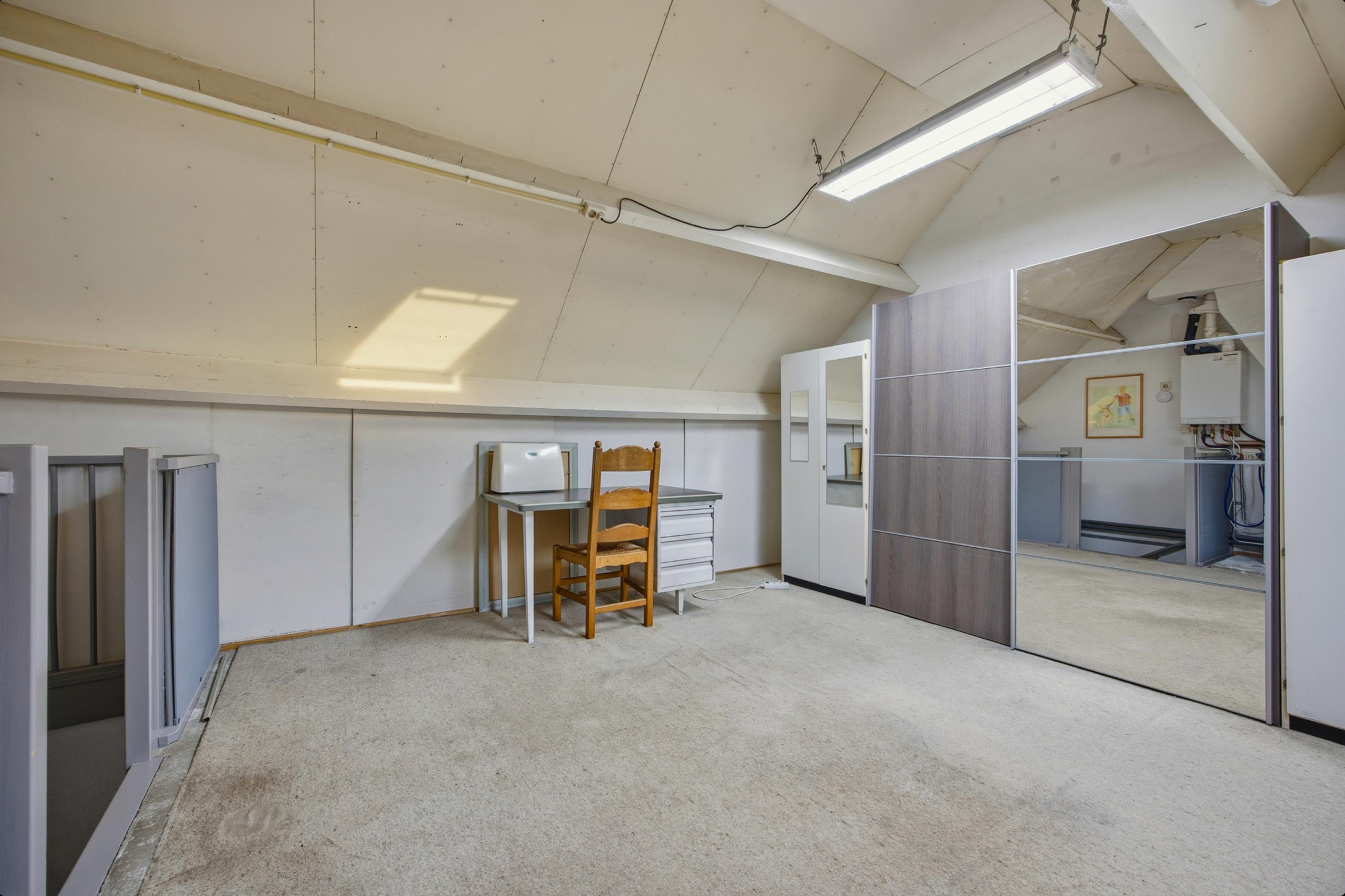 Via een vaste trap bereikt u de royale zolderverdieping. Deze grote open ruimte biedt de mogelijkheid om een voorzolder te creëren en één of twee extra slaapkamers te realiseren (vierde en vijfde slaapkamer).